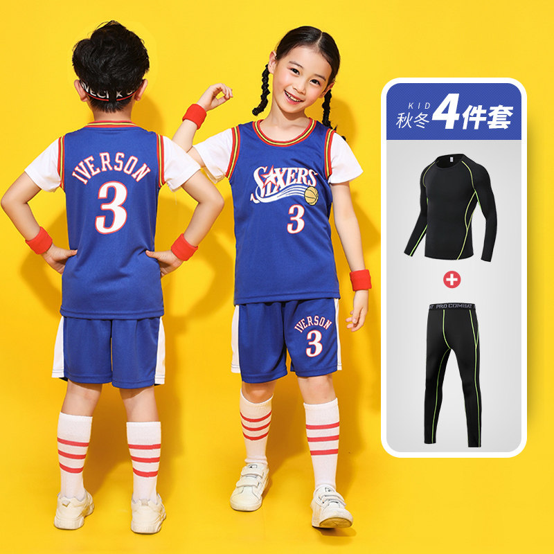 儿童专业速干篮球服校队比赛专用训练打底内搭紧身衣男女假两件套