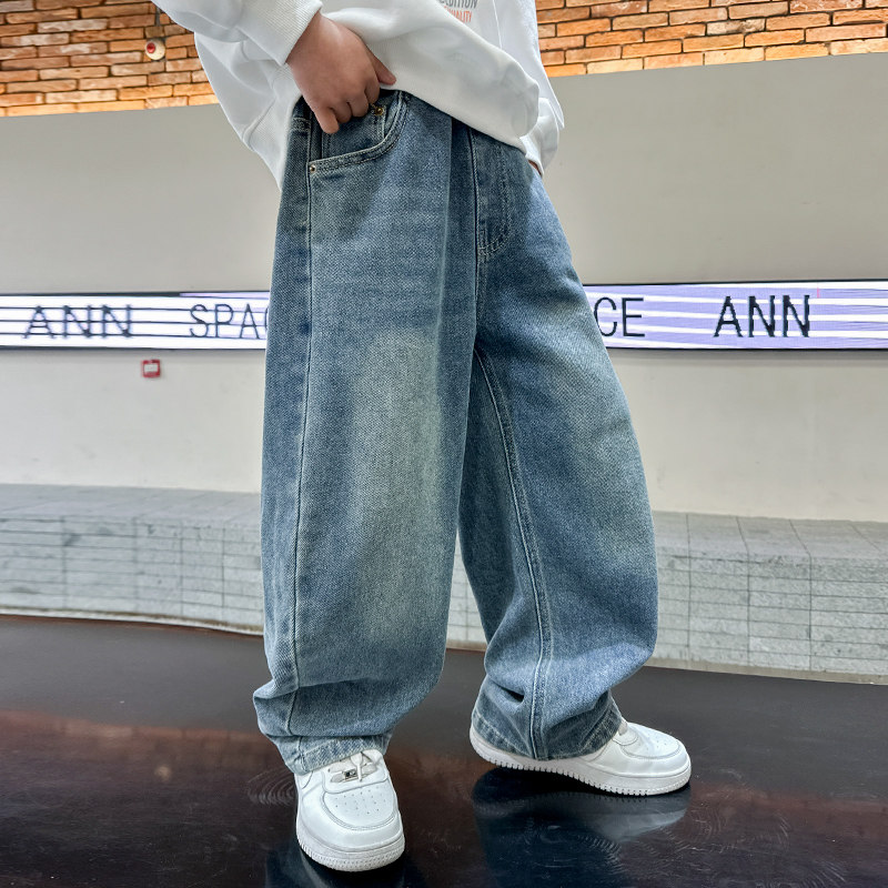 男童裤子春秋新款牛仔裤时尚直筒休闲帅气童装儿童宽松洋气阔腿裤