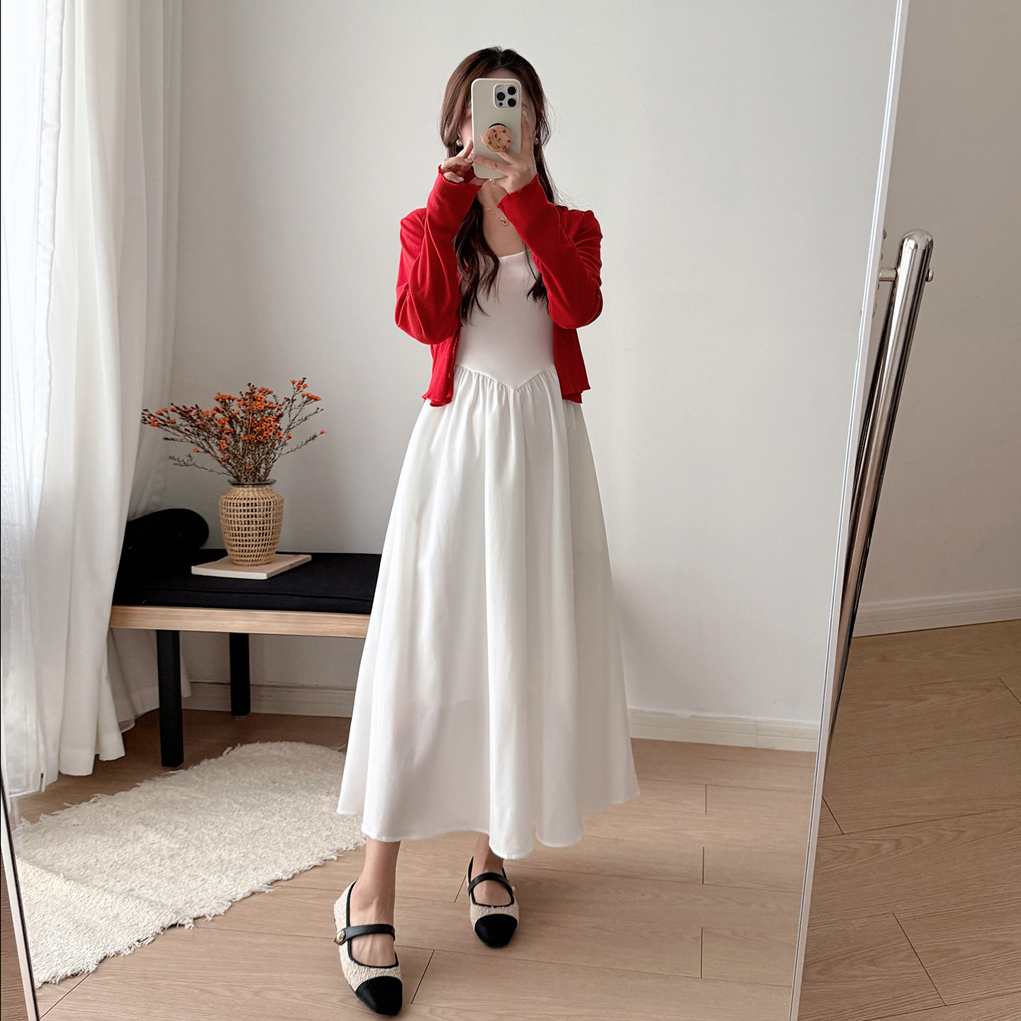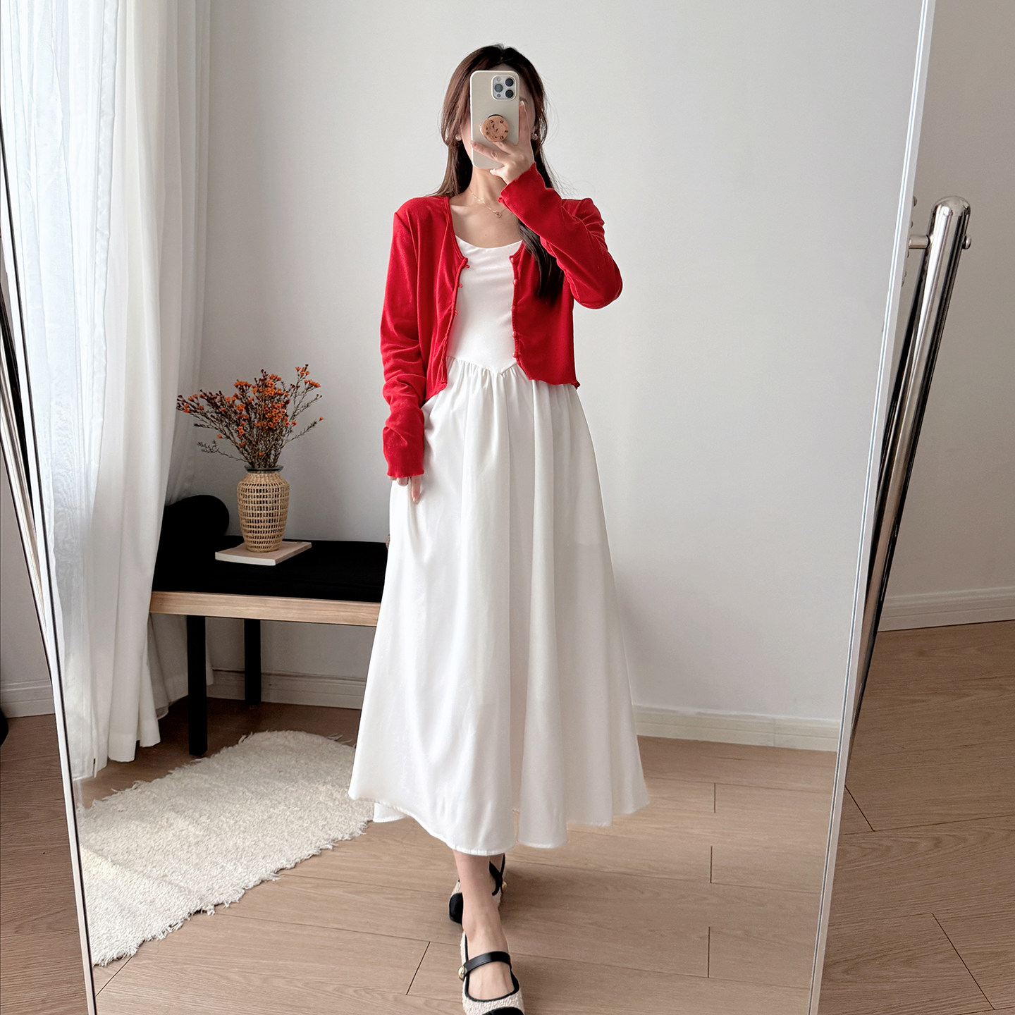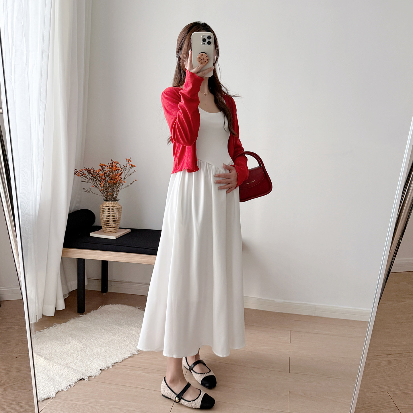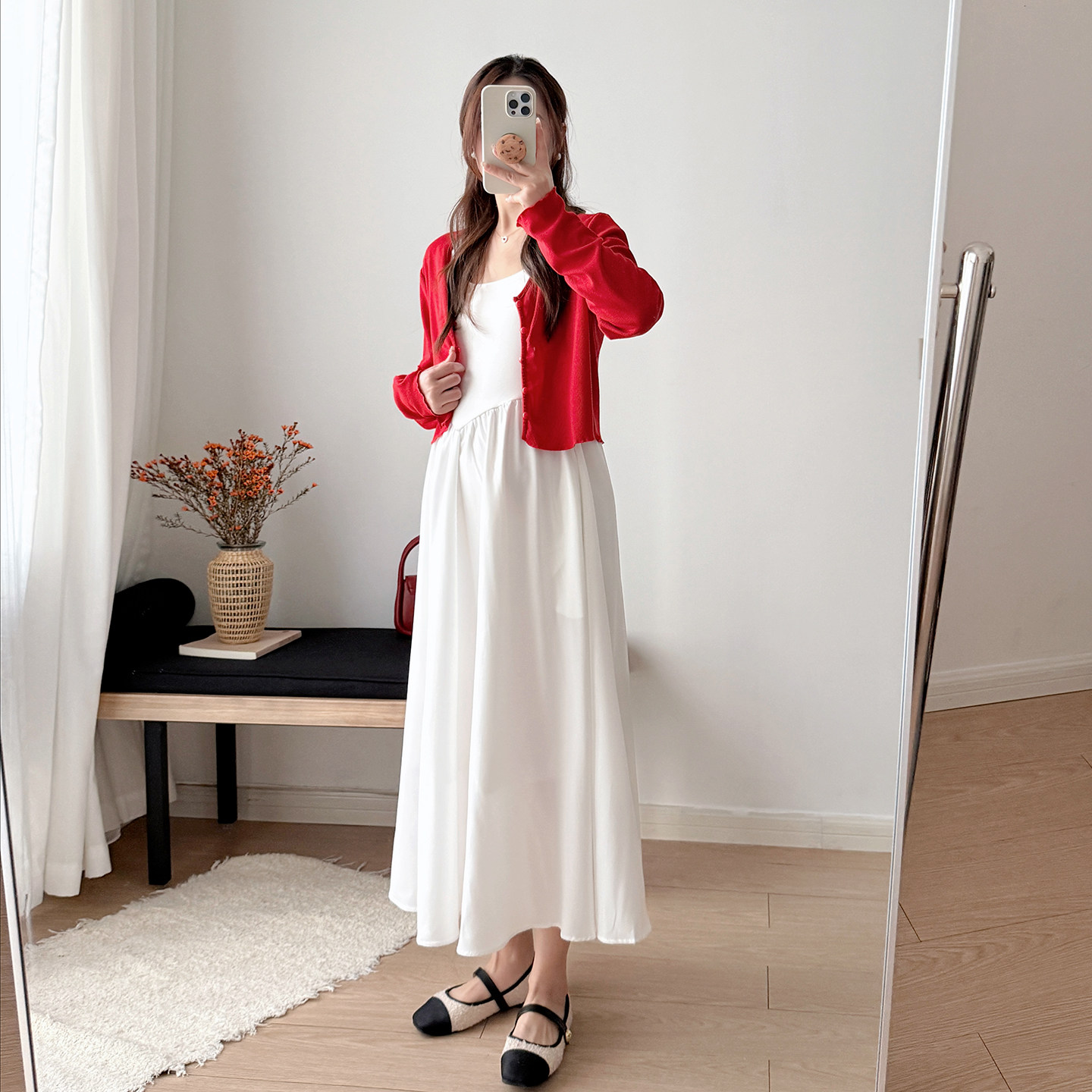 孕妇两件套连衣裙春装2026新款轻奢高级感春季红色开衫吊带裙套装