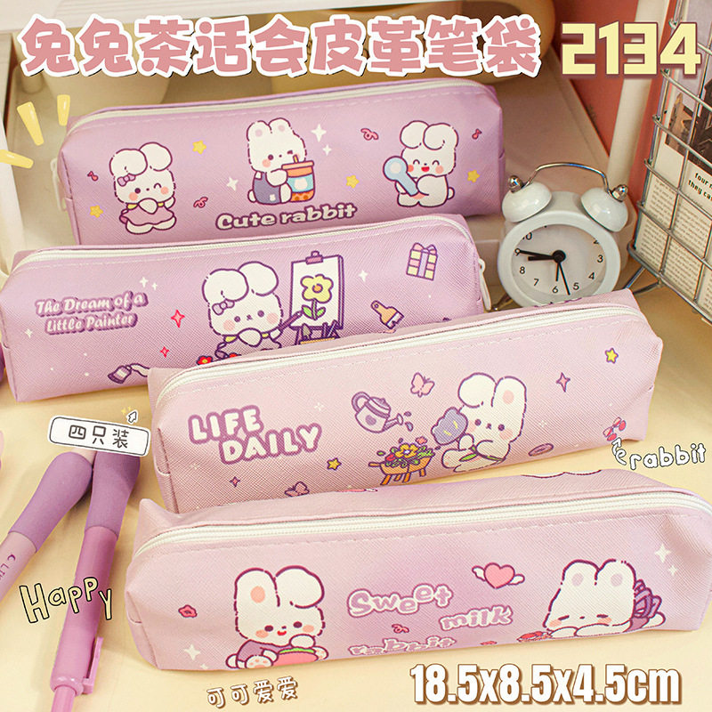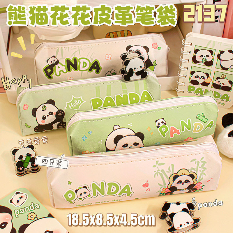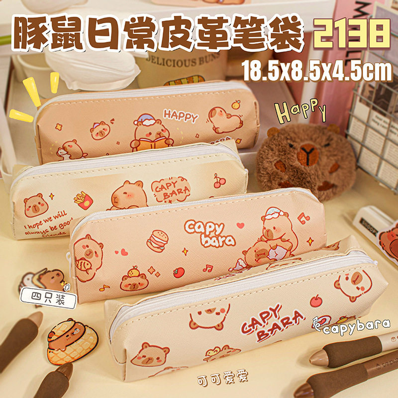 卡通可爱熊猫水豚皮革拉链笔袋高颜值简约ins风幼儿园学生专用大容量PU防水文具收纳盒铅笔袋儿童小奖品礼物