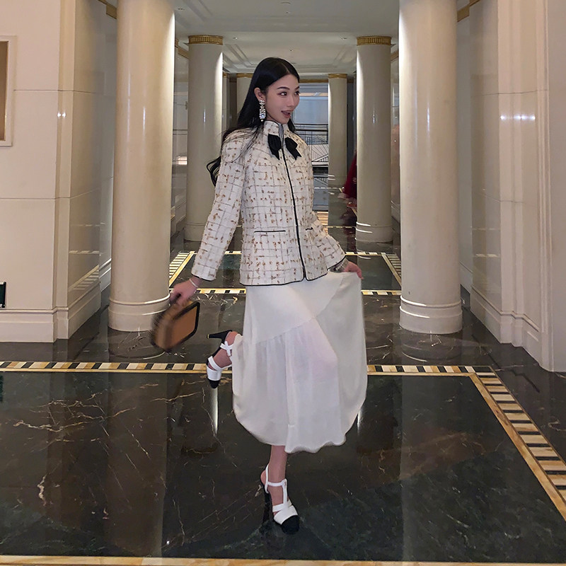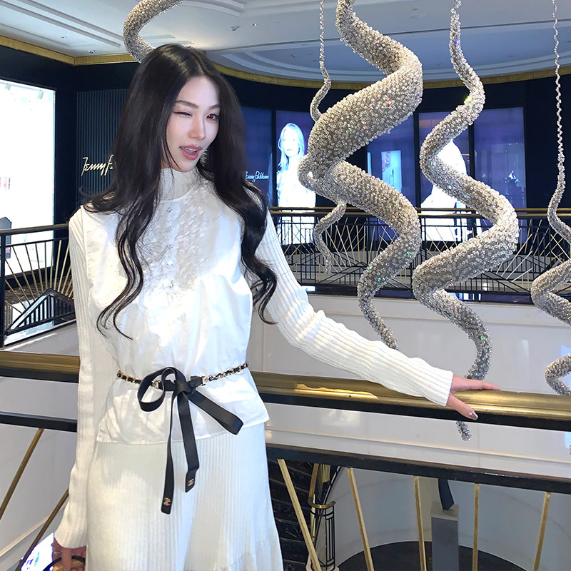 Boamarket 白色针织连衣裙女2025春季新款修身内搭高级长款裙子