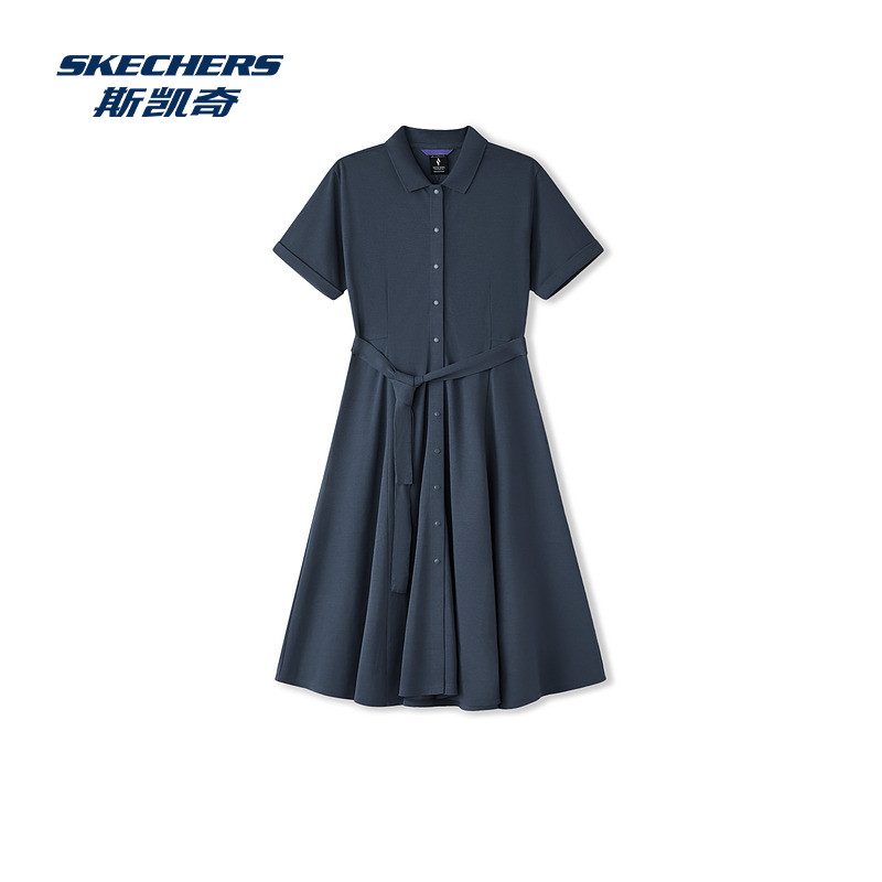 斯凯奇女士连衣裙2026春夏新款经典针织收腰显瘦通勤百搭长裙