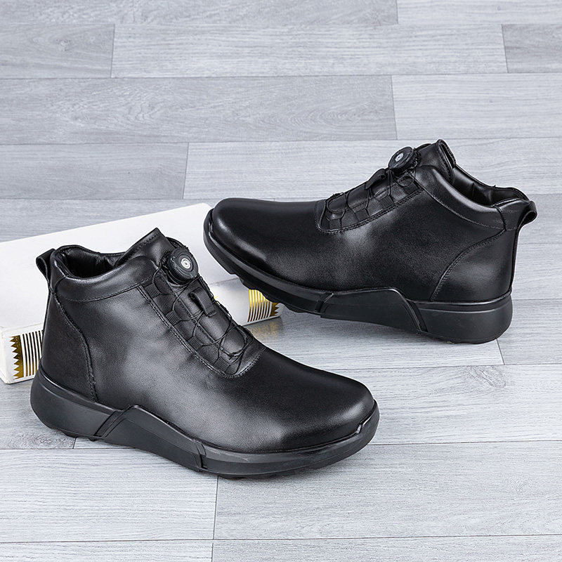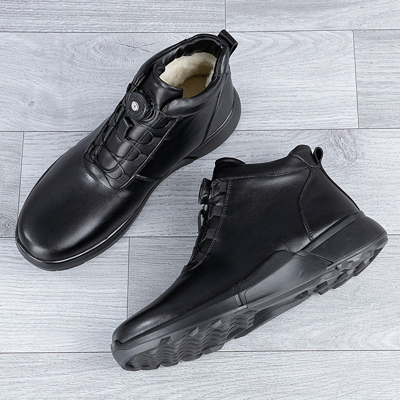 真皮高帮鞋加绒保暖棉鞋皮毛一体旋钮冬季新款头层牛皮男鞋雪地靴