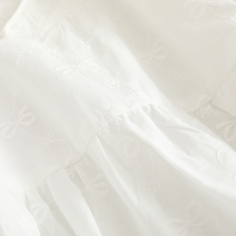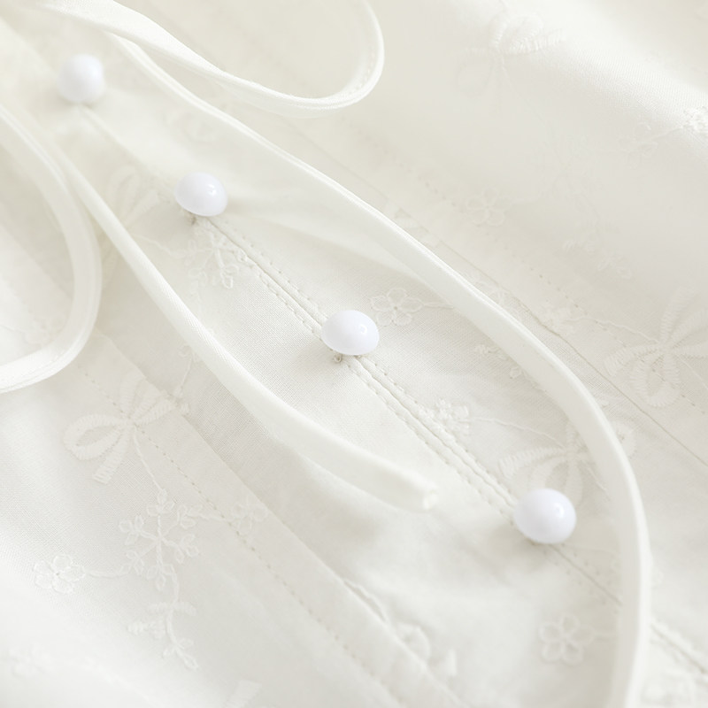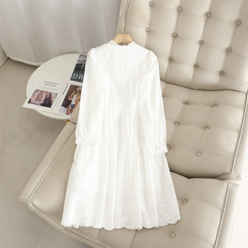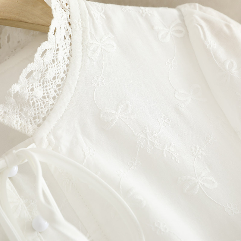 法式花边系带领蝴蝶刺绣白色连衣裙女2025春甜美减龄小个子中长裙