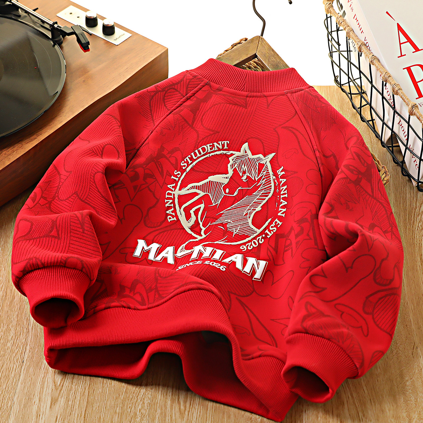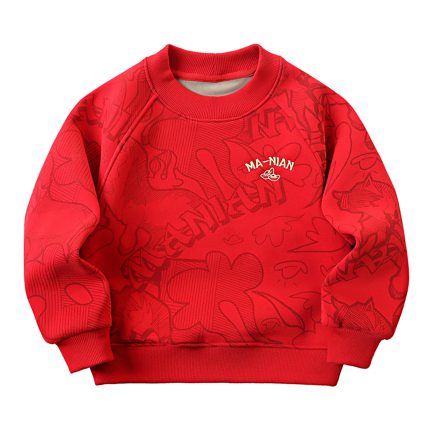 男童加绒红色卫衣马年2026新年款儿童过年拜年服中大童本命年上衣
