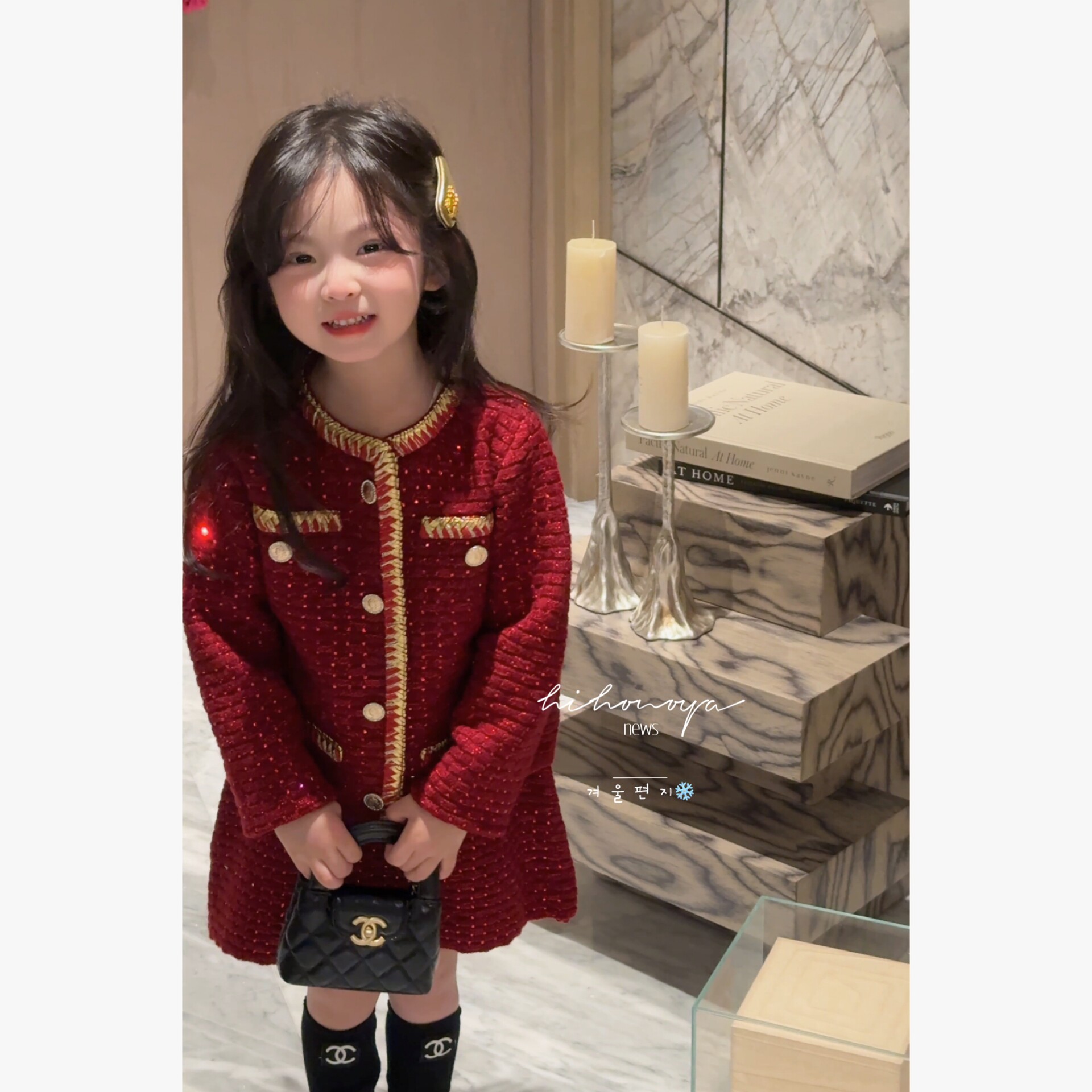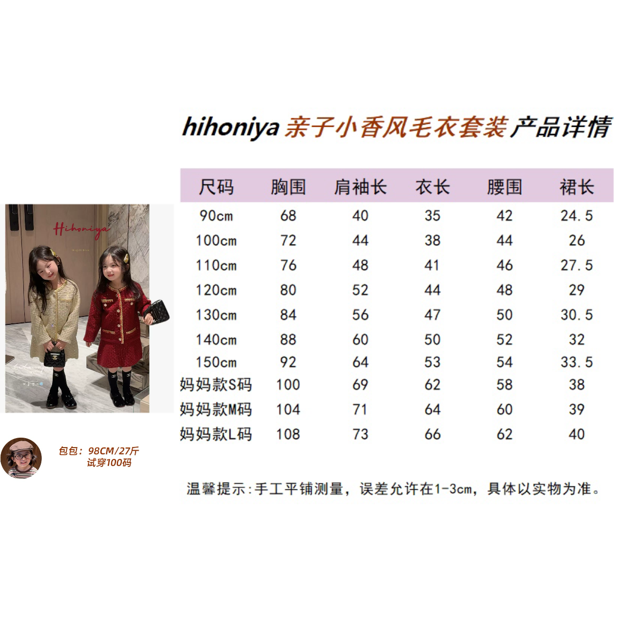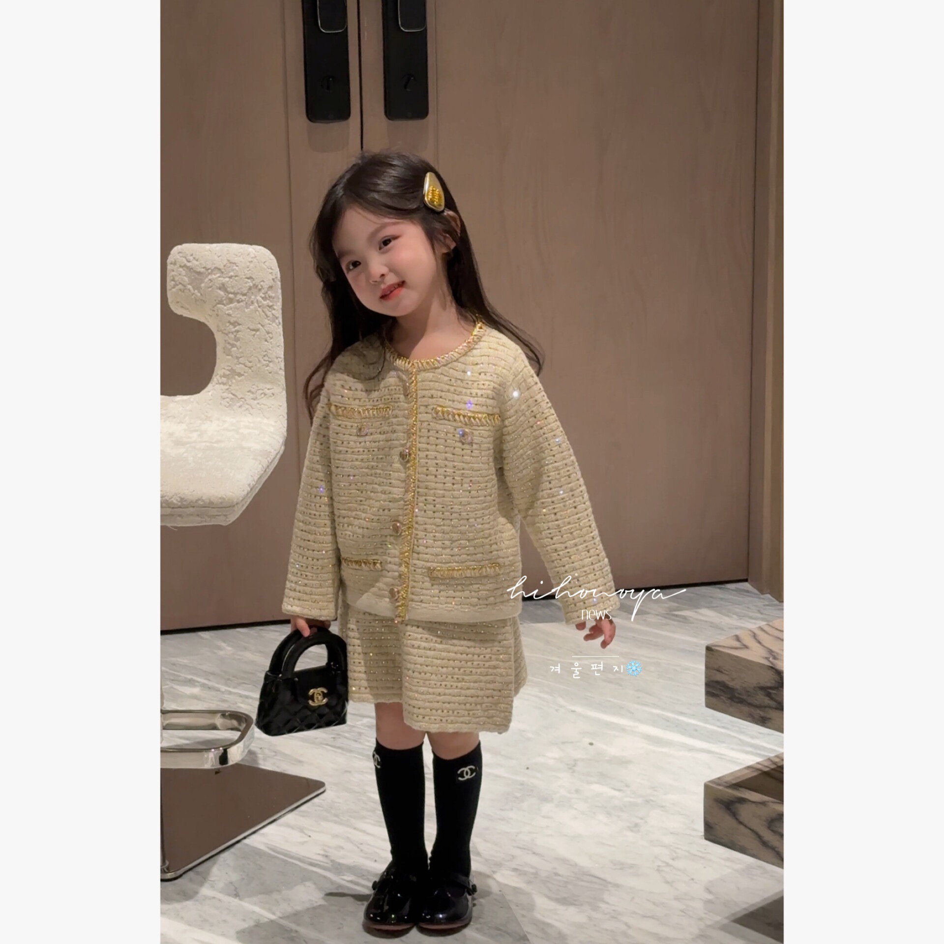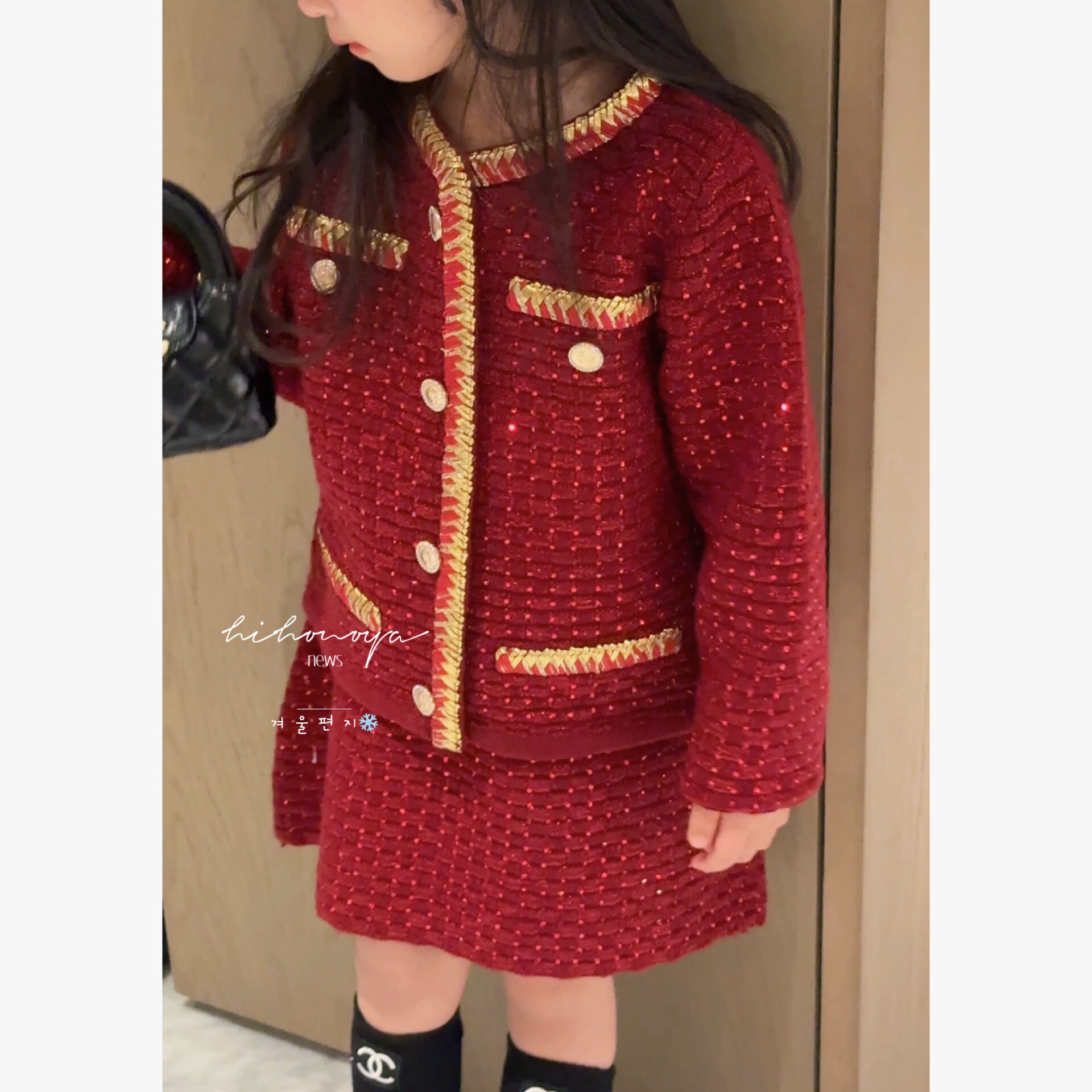 Spring韩国童装2026年冬季新款亲子新年小香风闪钻外套女童半身裙