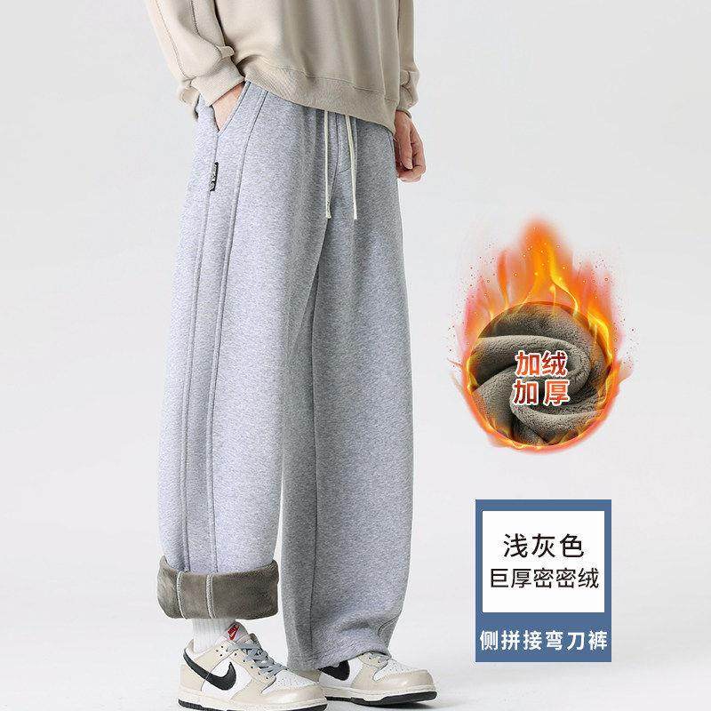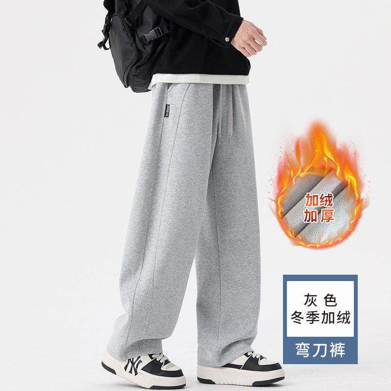 裤子男款冬季加绒加厚卫裤2026新款宽松休闲运动裤男款痞帅弯刀裤