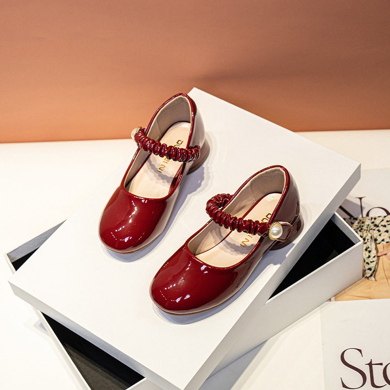 公主鞋女童高跟鞋2024春夏女孩软底红色皮鞋礼服演出走秀儿童单鞋
