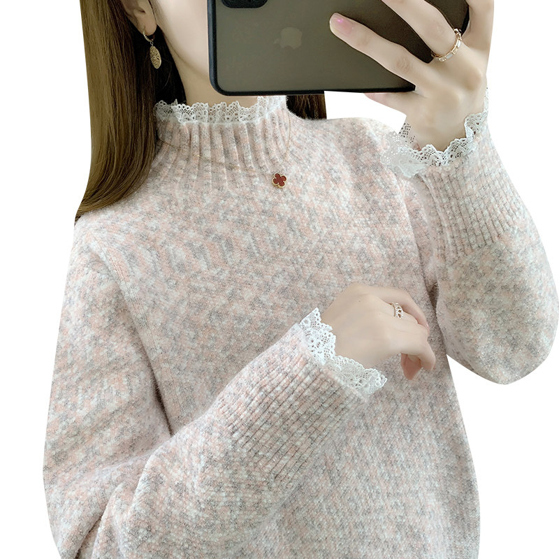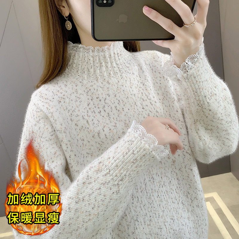 毛衣女款2025新款冬季宽松慵懒风加绒加厚内搭半高领打底衫女秋冬