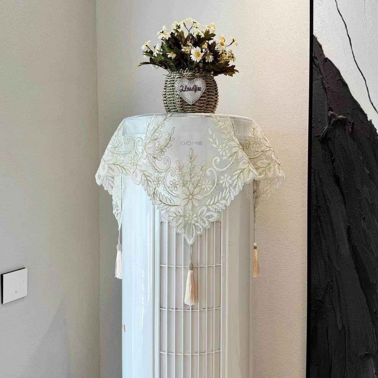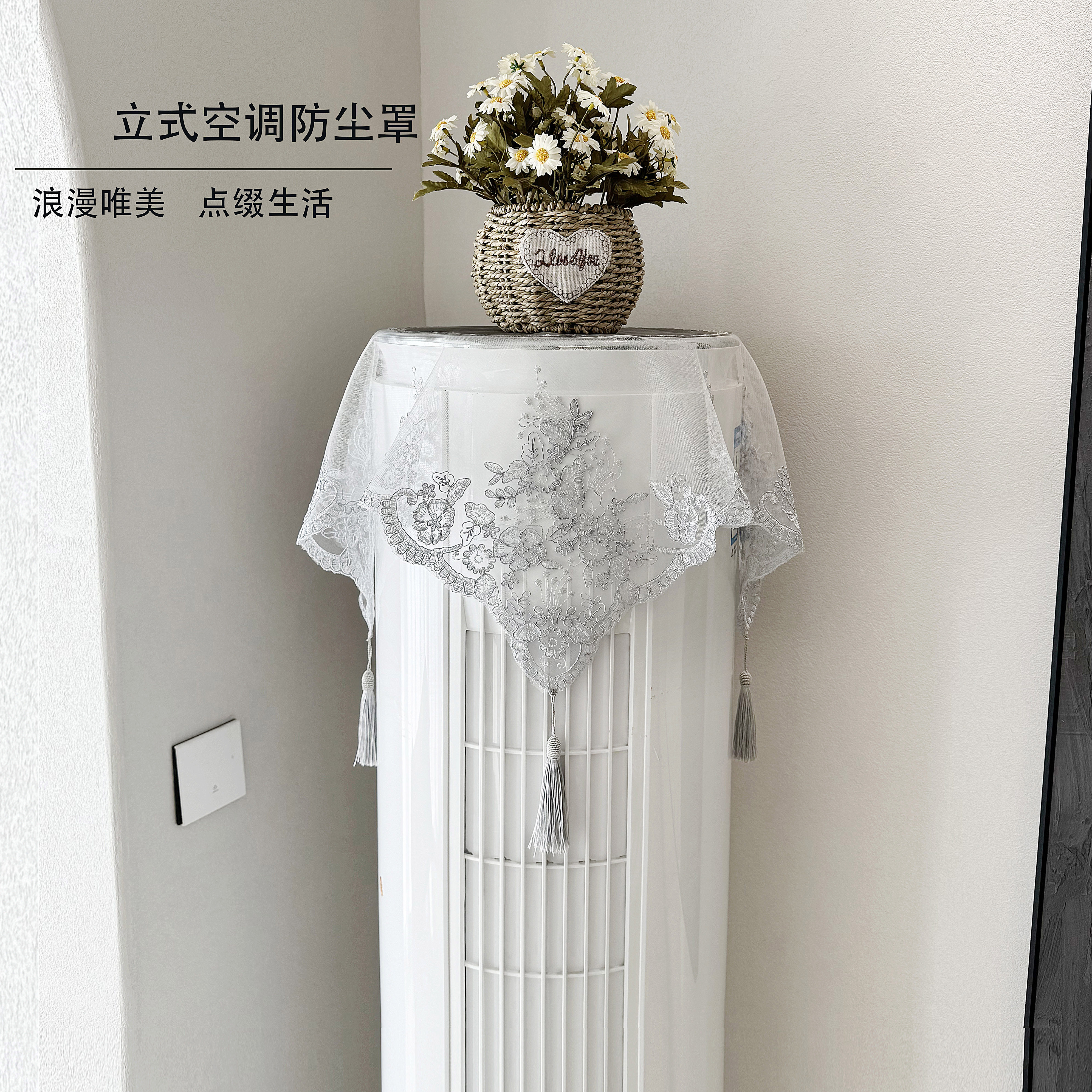 简约立式空调防尘罩双层蕾丝加厚丝绒空调盖布老式柜机空调盖巾帘