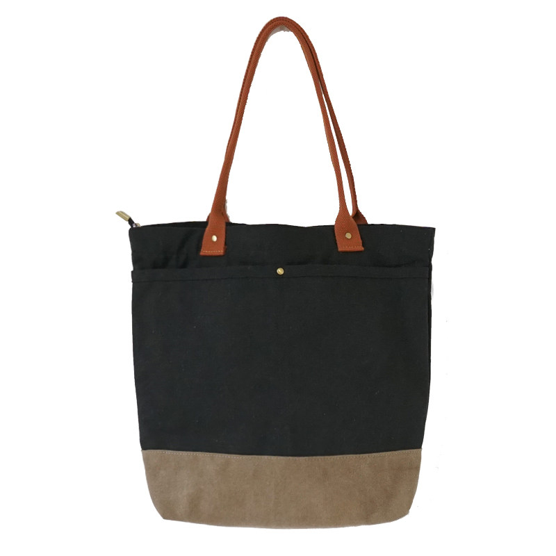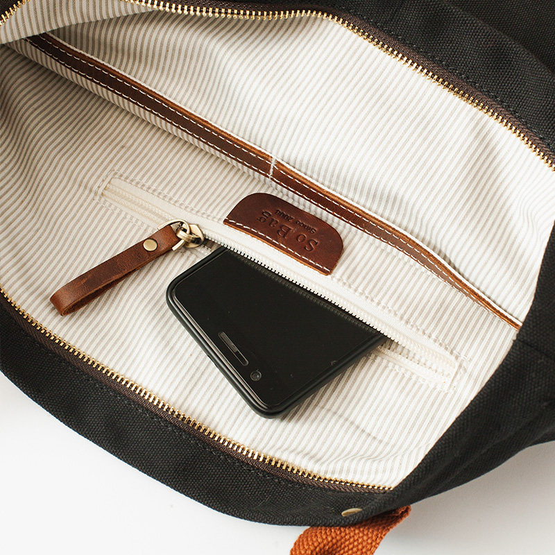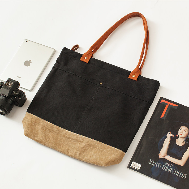 sobag黑色韩版帆布包女春季原宿风拉链单肩包大容量复古托特包女