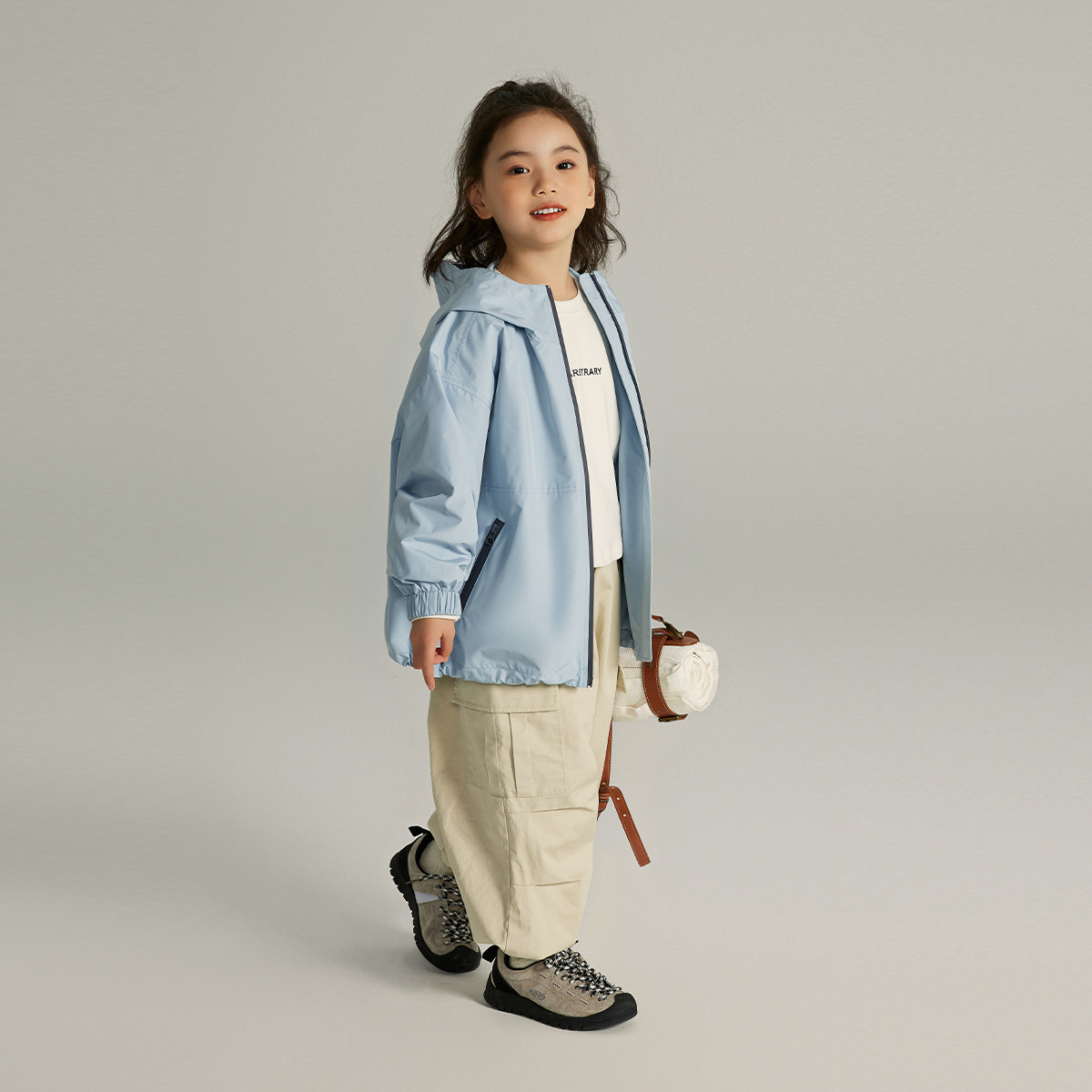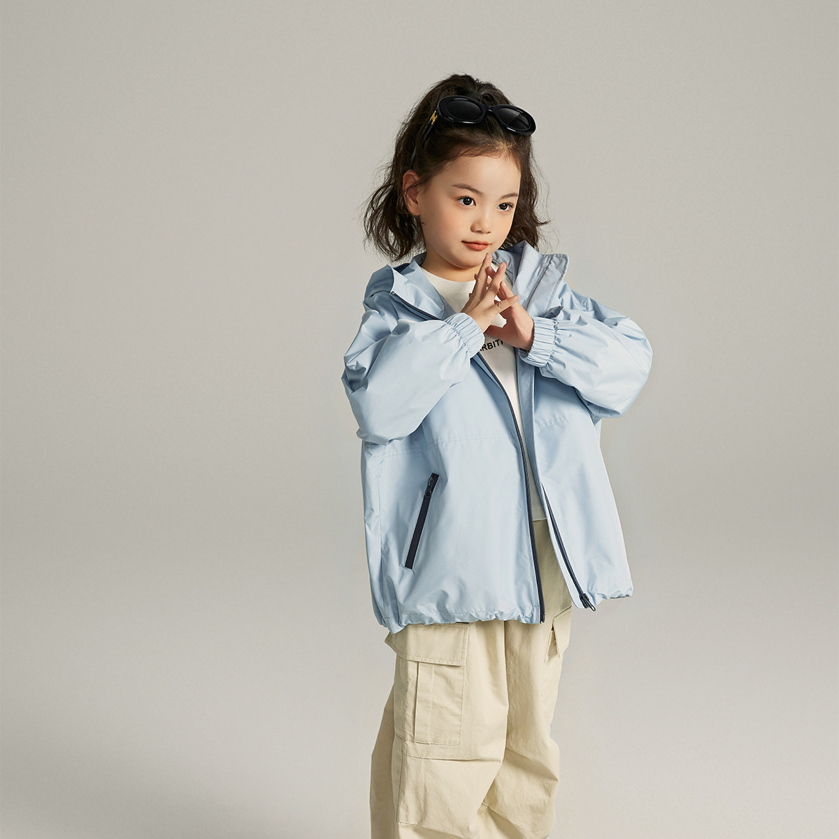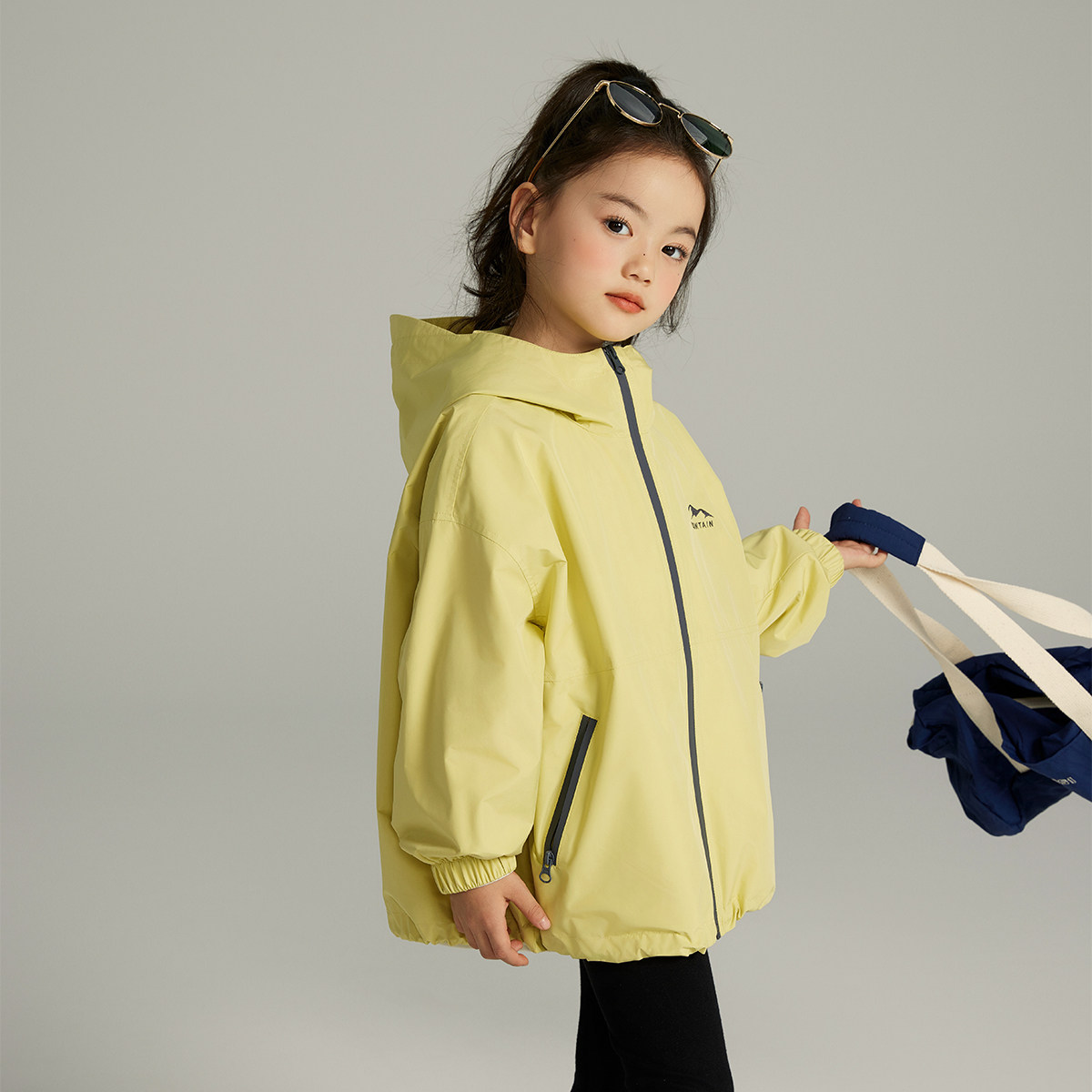布丁哈鲁春装女童三防2026春秋新款洋气儿童连帽防风休闲外套纯色