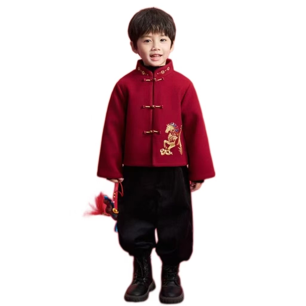 过年战袍高级感男童2026超火冬装一整套新年衣服中国风服装女童韩