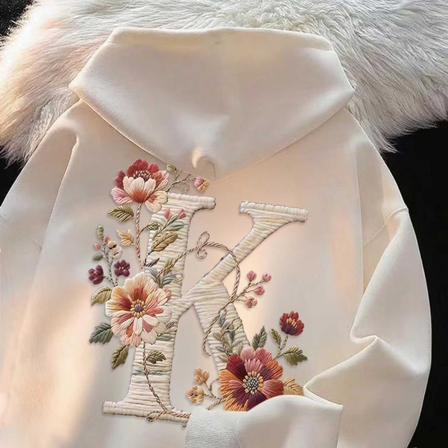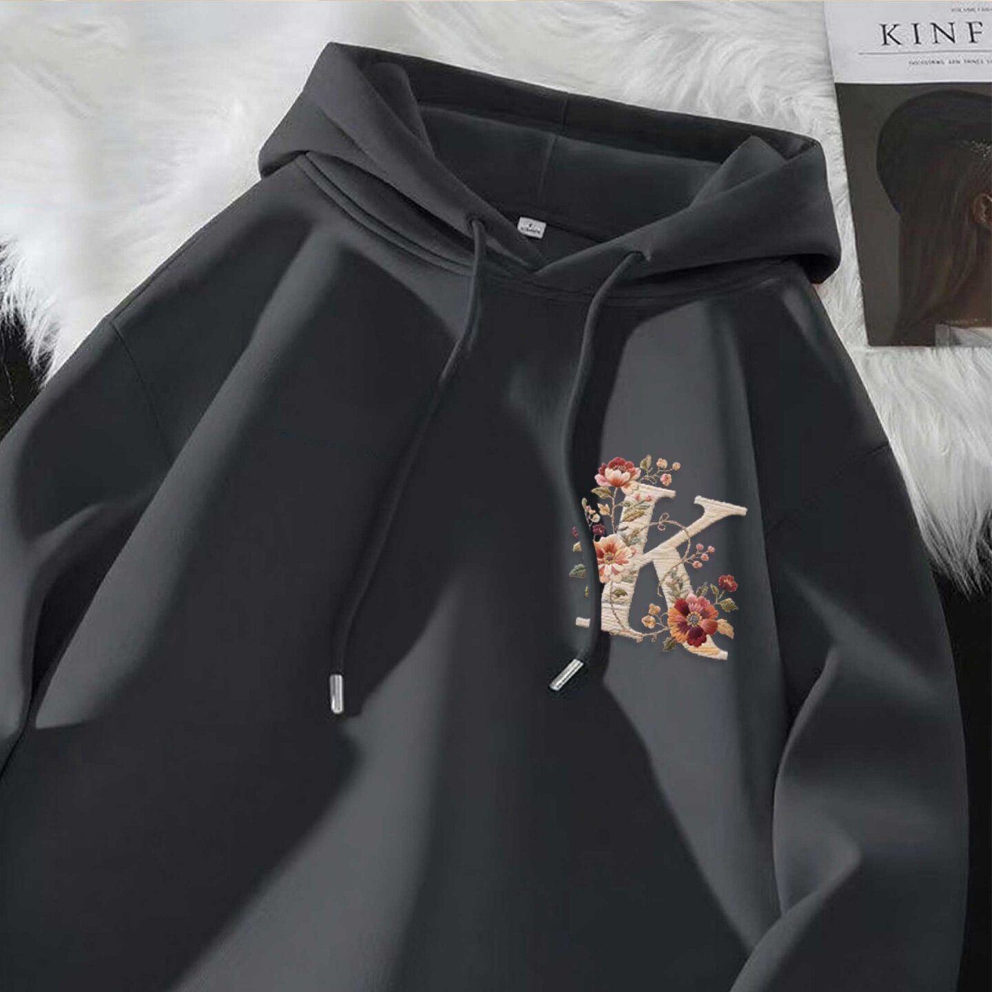 秋冬加绒加厚字母印花连帽卫衣设计感K字母仿刺绣宽松男女款外套