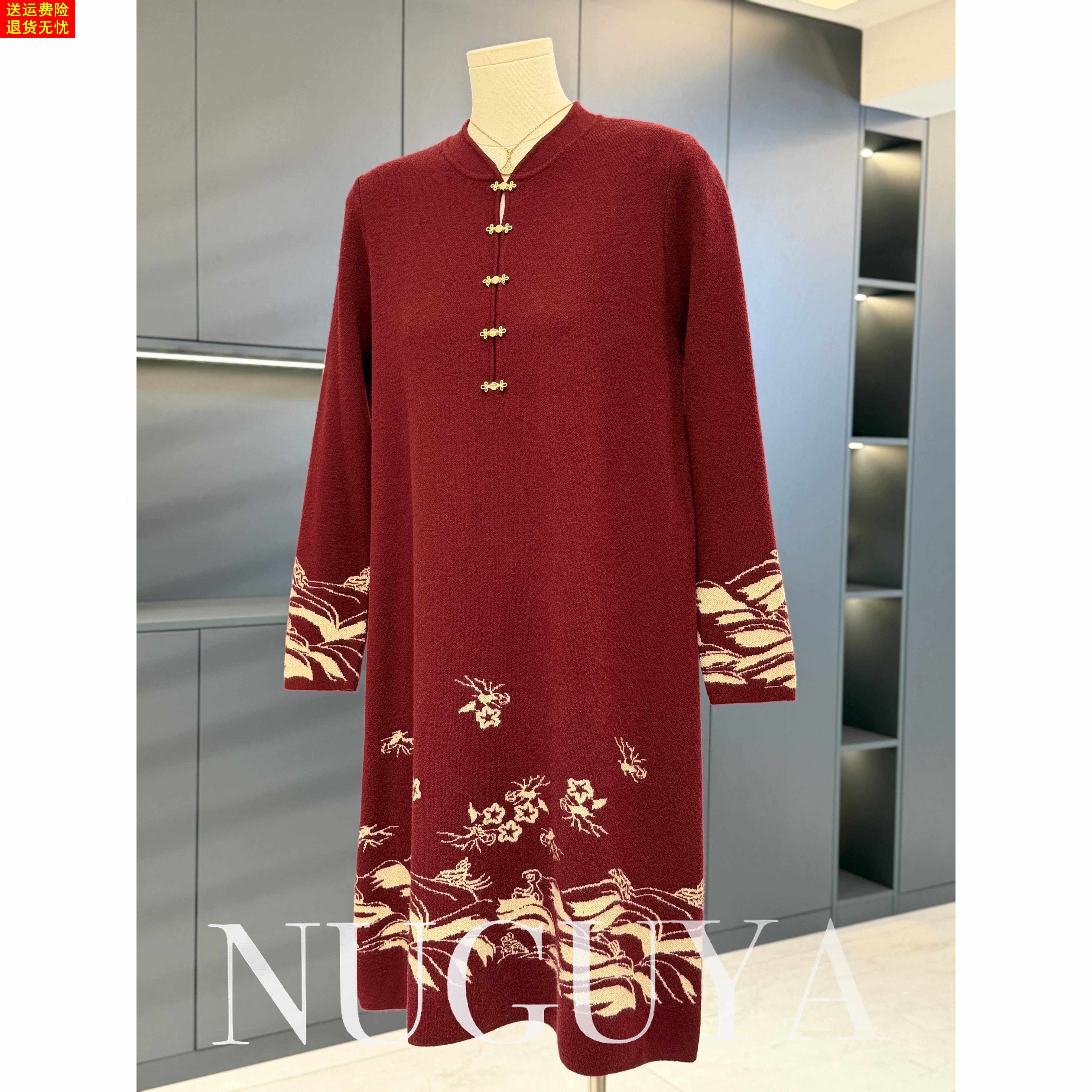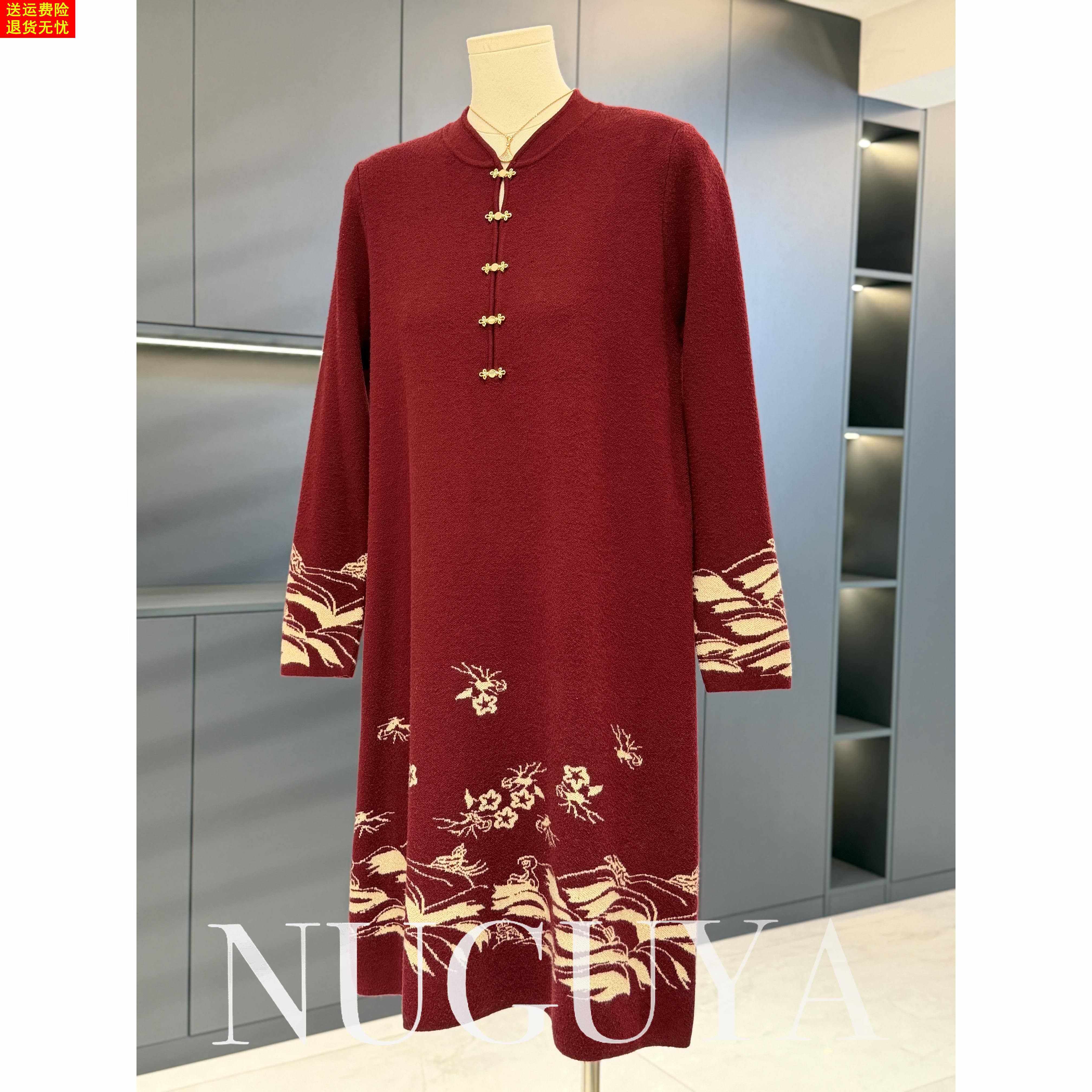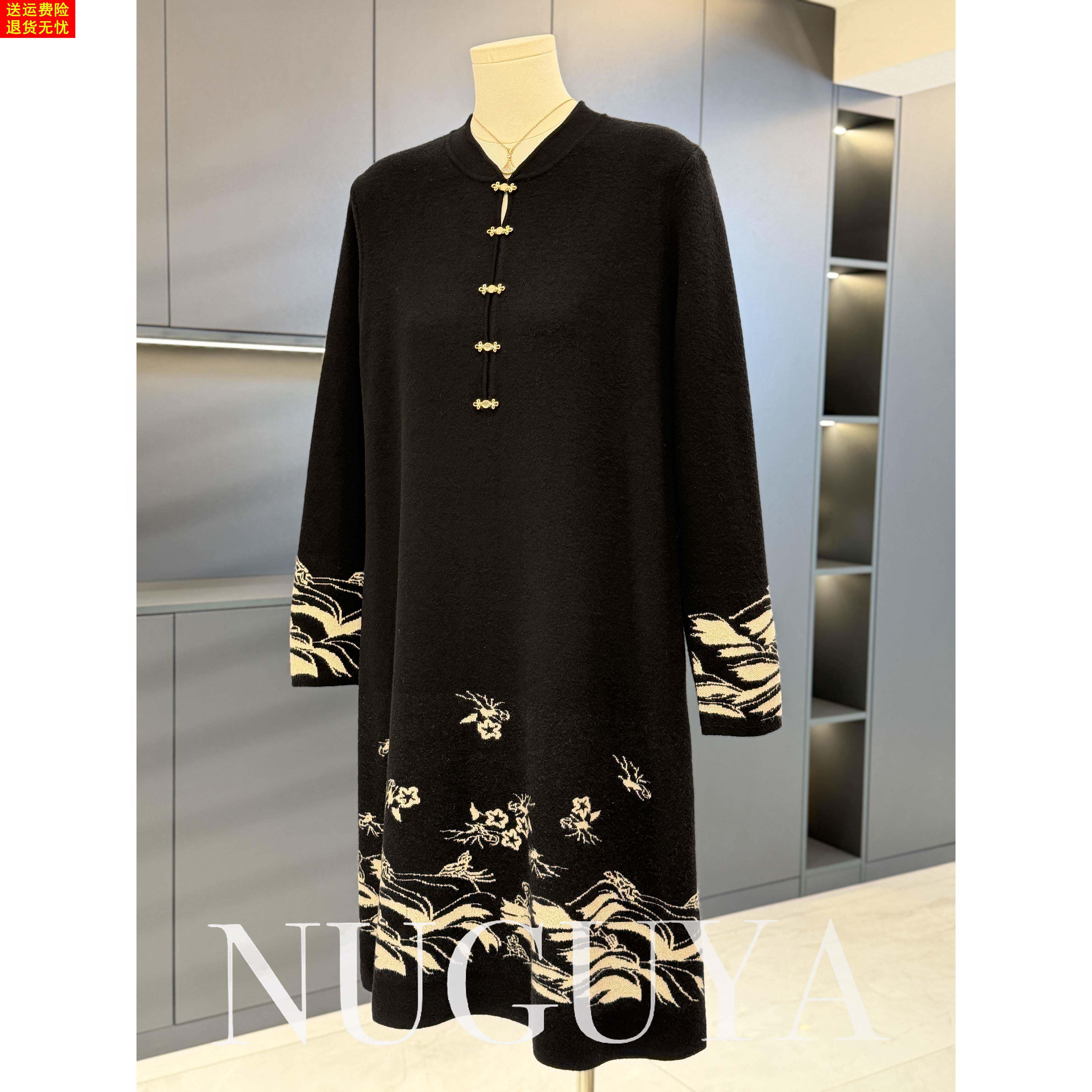 新中式立领盘扣针织连衣裙女妈妈装冬装新款洋气中老年毛衣裙宽松