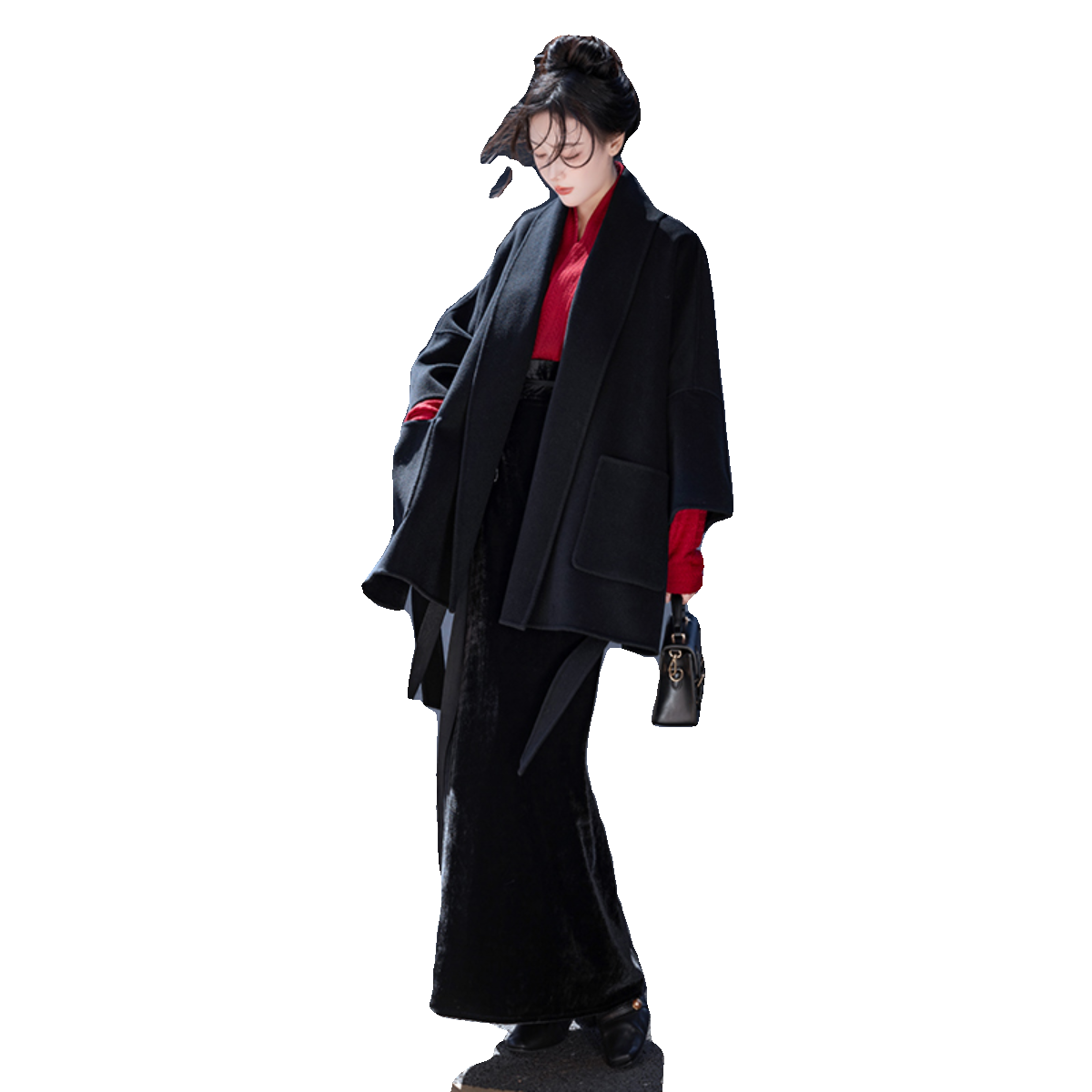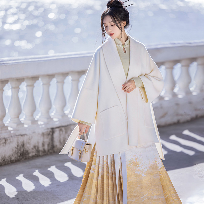 拟梦至简国风原创改良飞机袖羊毛双面呢大衣外套搭马面裙显瘦秋冬