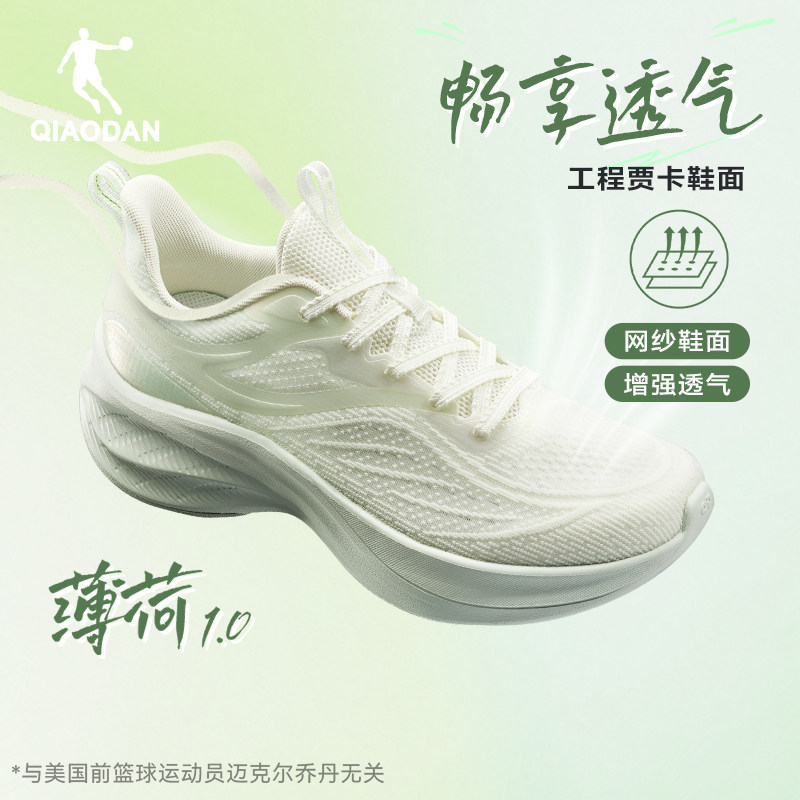 乔丹薄荷绿厚底减震轻便运动鞋女鞋2026新款春季网面透气增高跑鞋