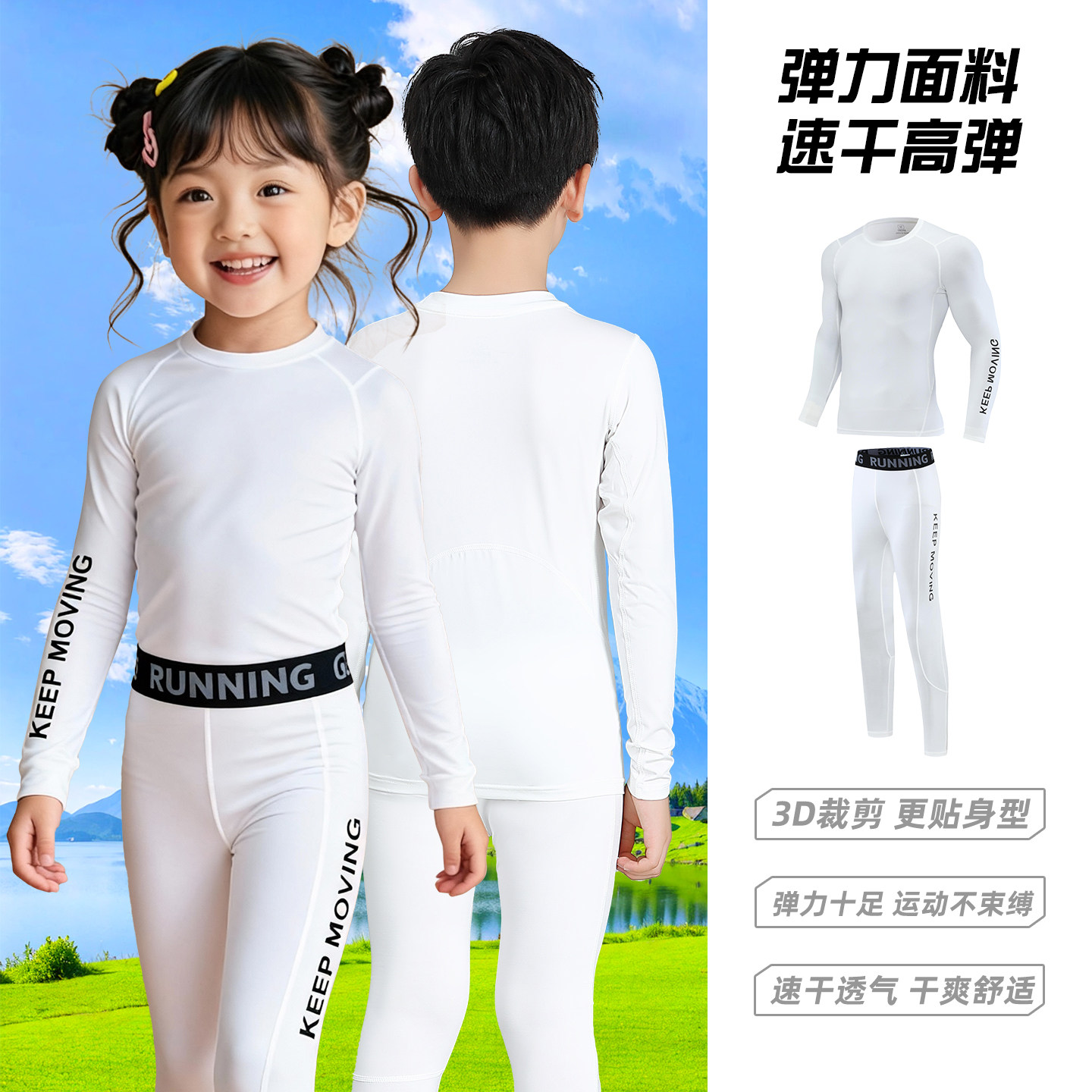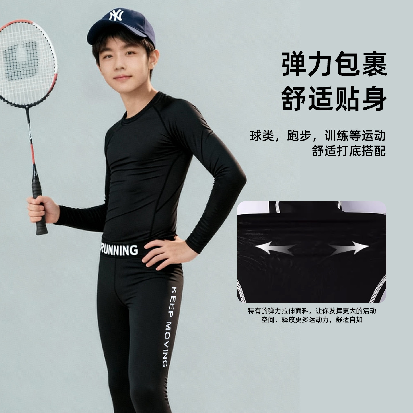 健身服打底紧身衣速干衣男童训练弹力裤套装女童秋冬季羽毛球服