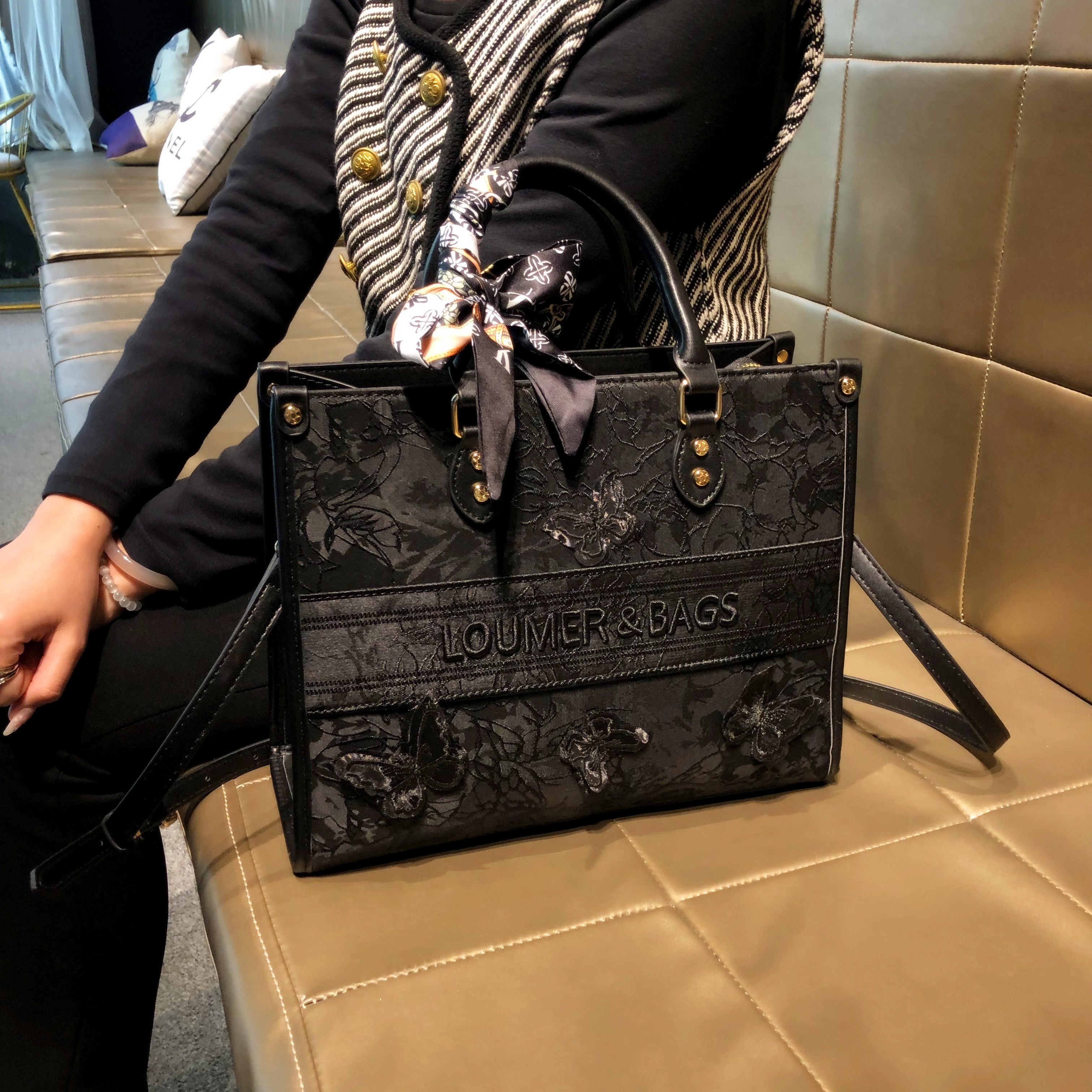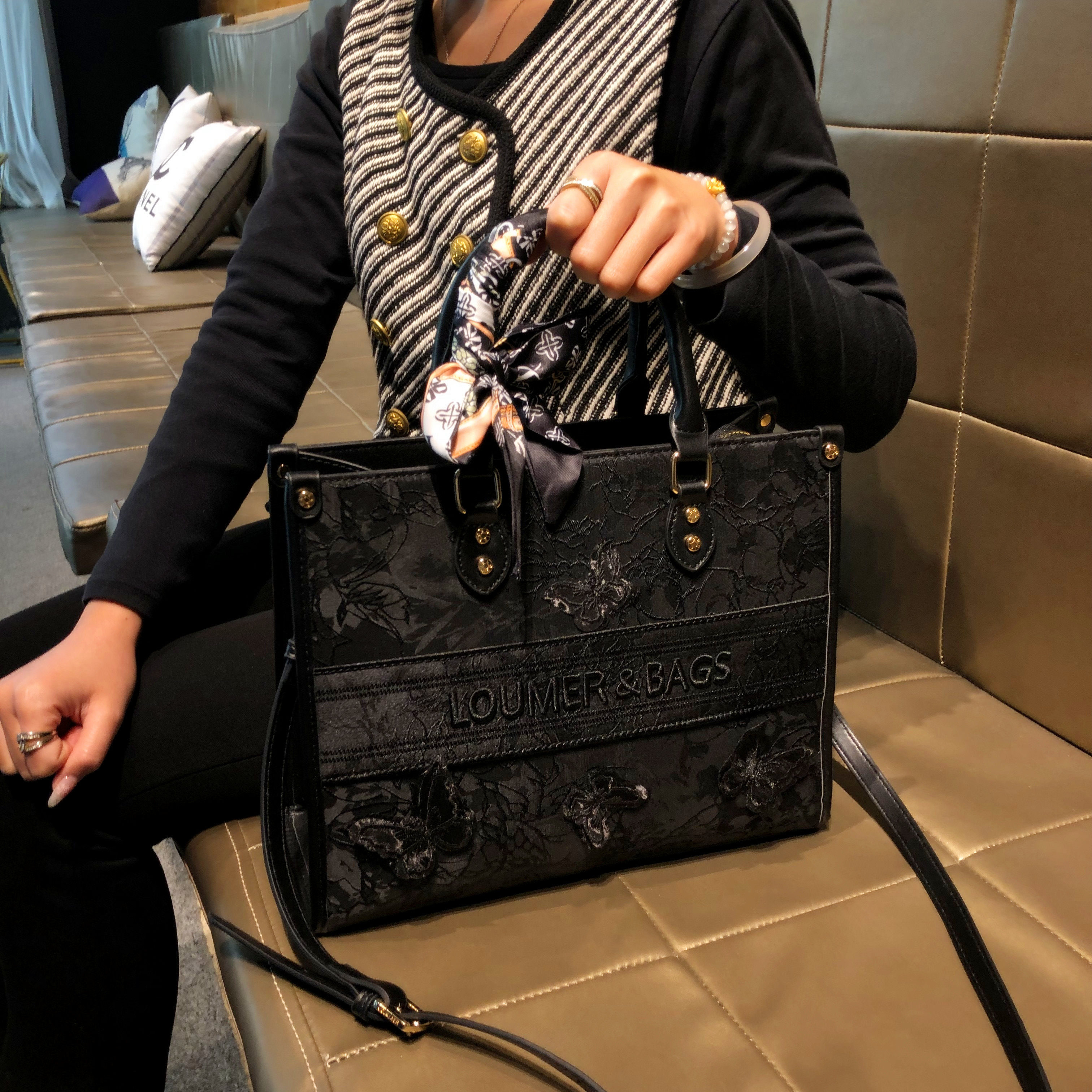 香港品牌包包女款2026款大容量黑色通勤包真皮单肩手提斜挎托特包