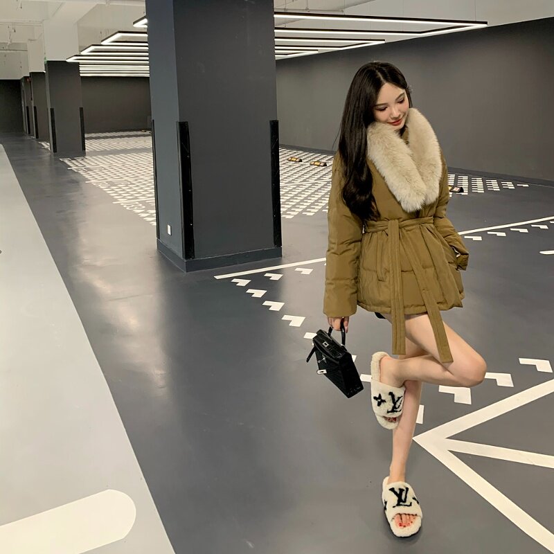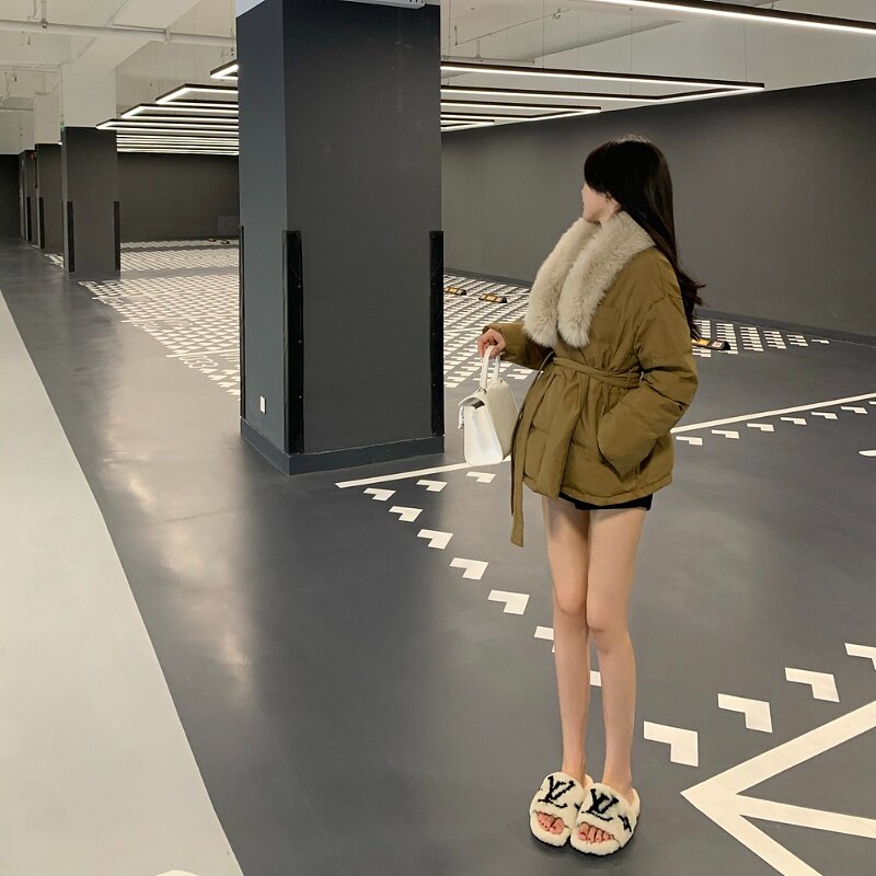 M900羽绒服外套女冬季2026新款短款小个子面包服卡其色美拉德毛领