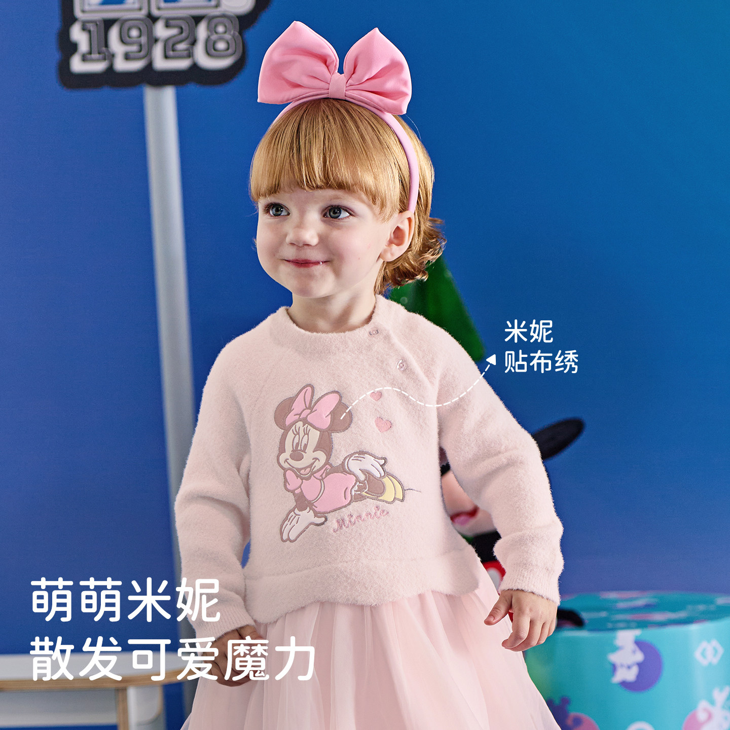 迪士尼IP戴维贝拉女童毛衣连衣裙2026春装新款儿童宝宝网纱裙子