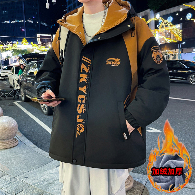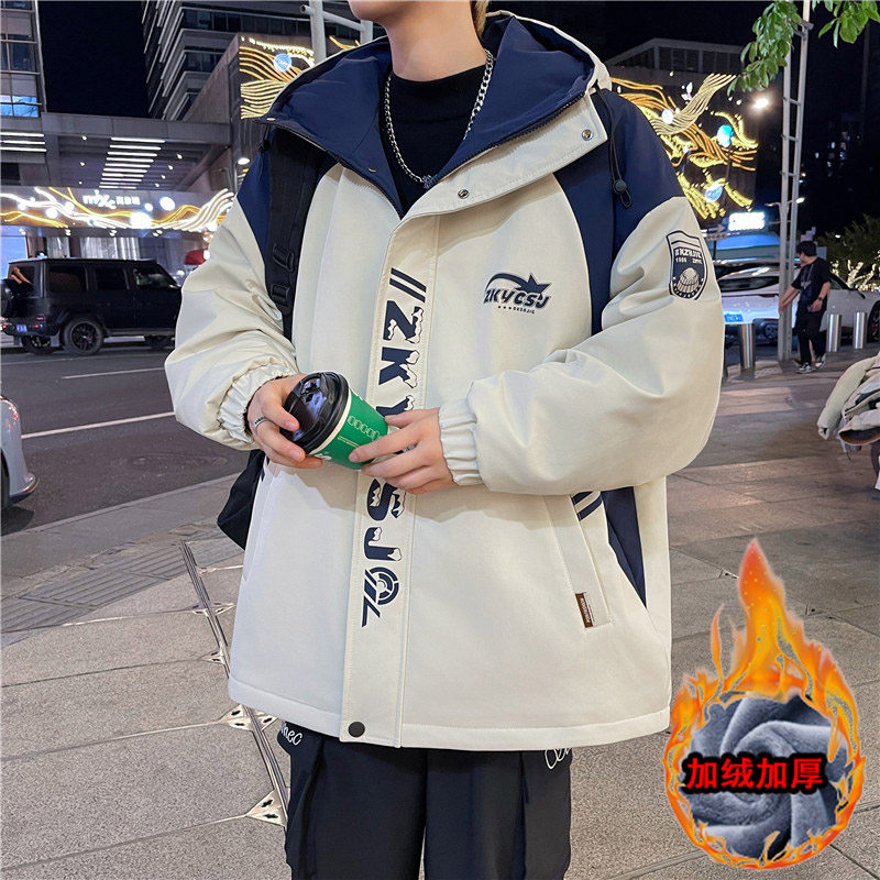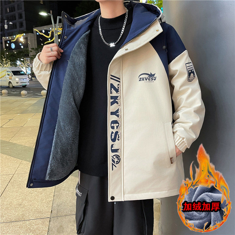 青少年秋冬装冲锋衣外套男孩初中学生加绒加厚夹克棉袄大童派克服
