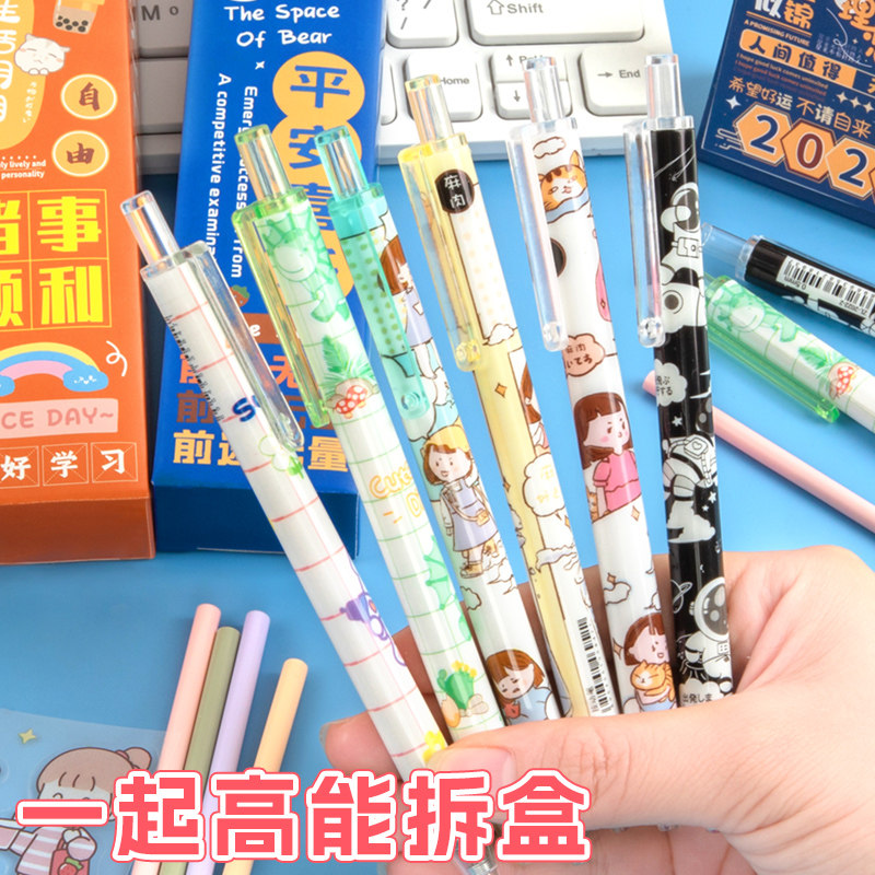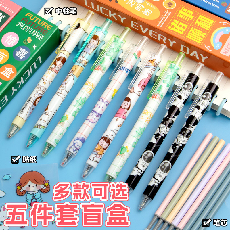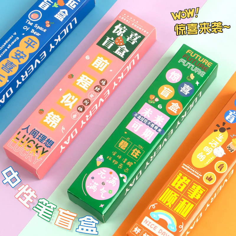 励志盲盒笔创意小学生奖品按动式中性笔女孩可爱黑笔初中生签字笔速干男生水性圆珠笔可替换笔芯礼物批发文具