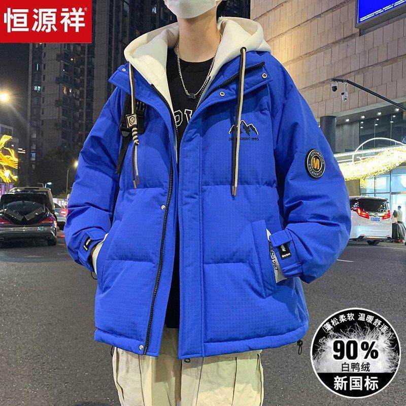 恒源祥初中生羽绒服男冬季青少年2024款防水潮牌连帽假两件防寒服
