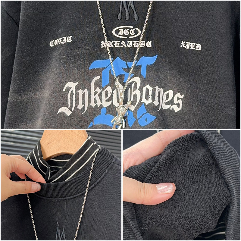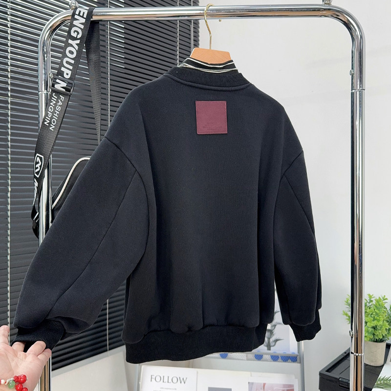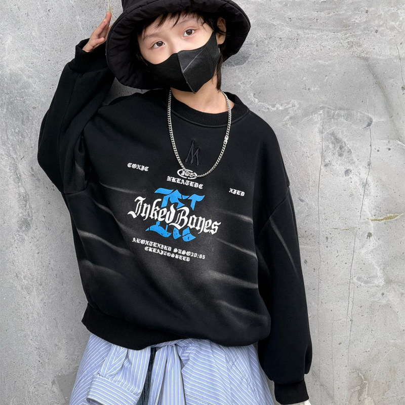 大E小e童装男童黑色加绒卫衣冬款中大童加厚长袖T恤儿童上衣67236