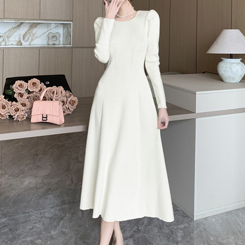 杏色长裙连衣裙女2025秋冬款配大衣内搭收腰显瘦高级感气质赫本裙