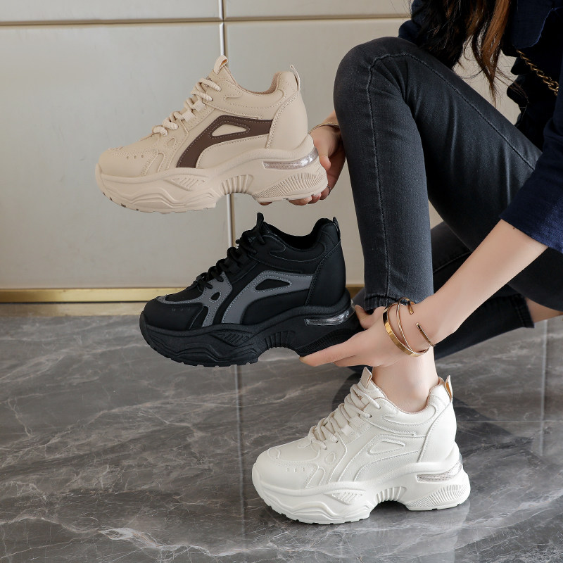 踩屎感老爹鞋女款2025新款小个子内增高运动鞋百搭显脚小厚底女