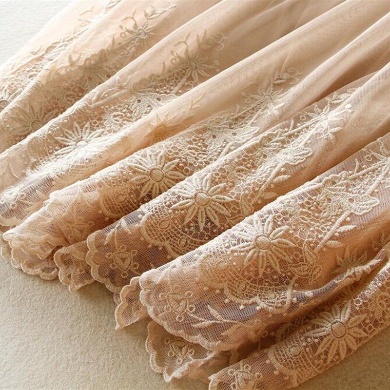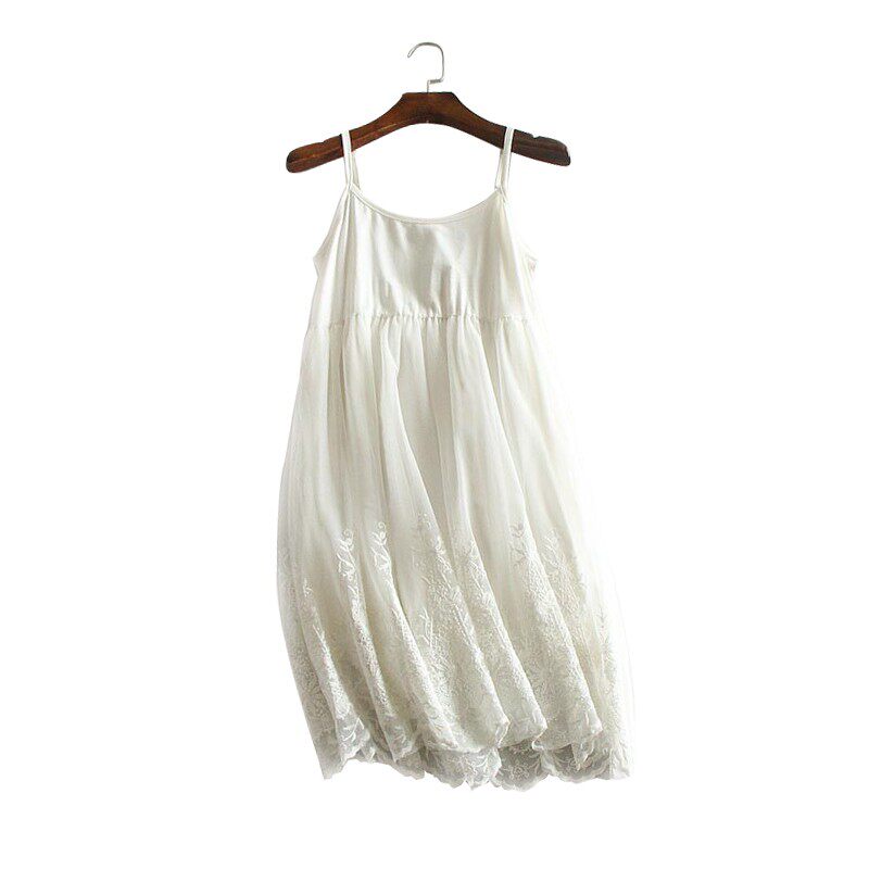 裙子女秋冬连衣裙中长款刺绣蕾丝内搭吊带裙小个子大码打底网纱裙
