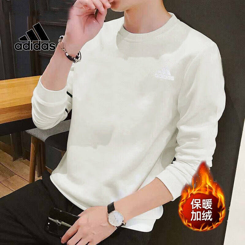 adidas阿迪达斯加绒卫衣男冬季新套头衫奶白运动服加厚外套HL2282