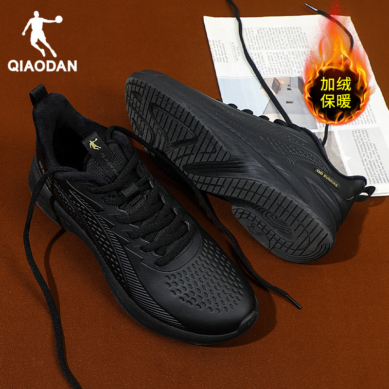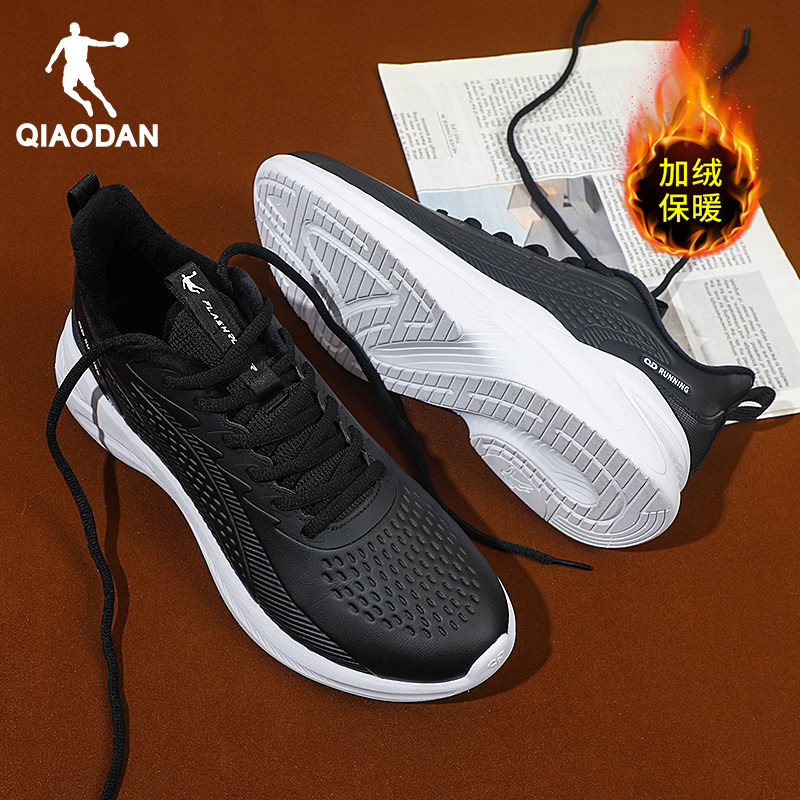 乔丹加绒运动鞋男款冬季男鞋防水皮面跑步鞋子青少年学生软底跑鞋