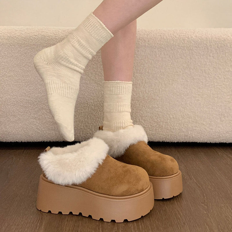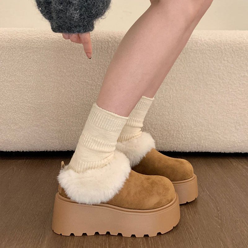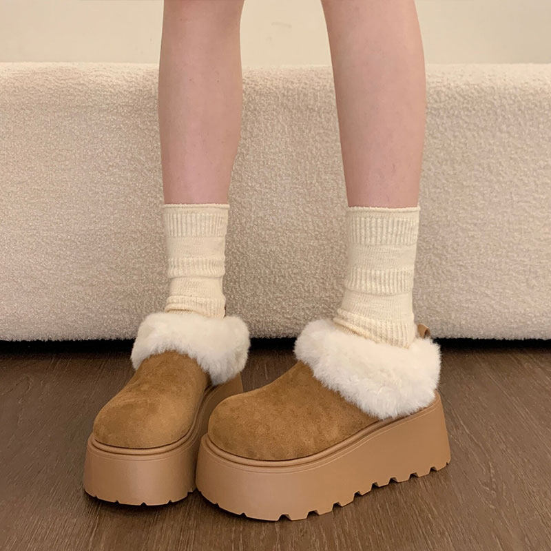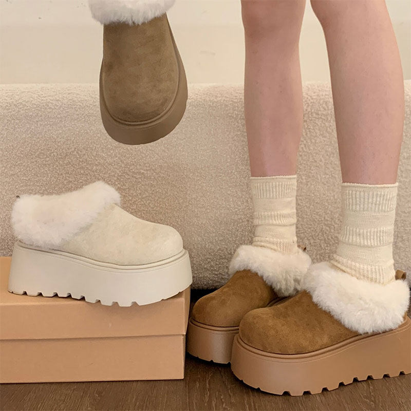 厚底增高勃肯鞋女2025冬季加绒加厚雪地棉毛绒棉靴保暖博肯女鞋子