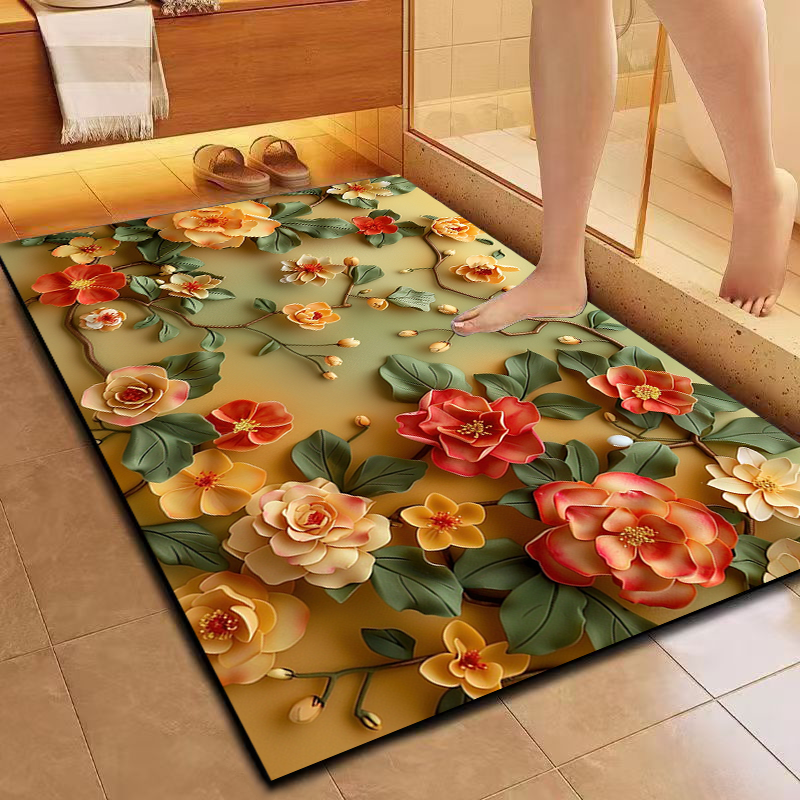 3D立体花卉硅藻泥软垫浴室卫生间地垫厨房玄关门口防滑吸水速干垫