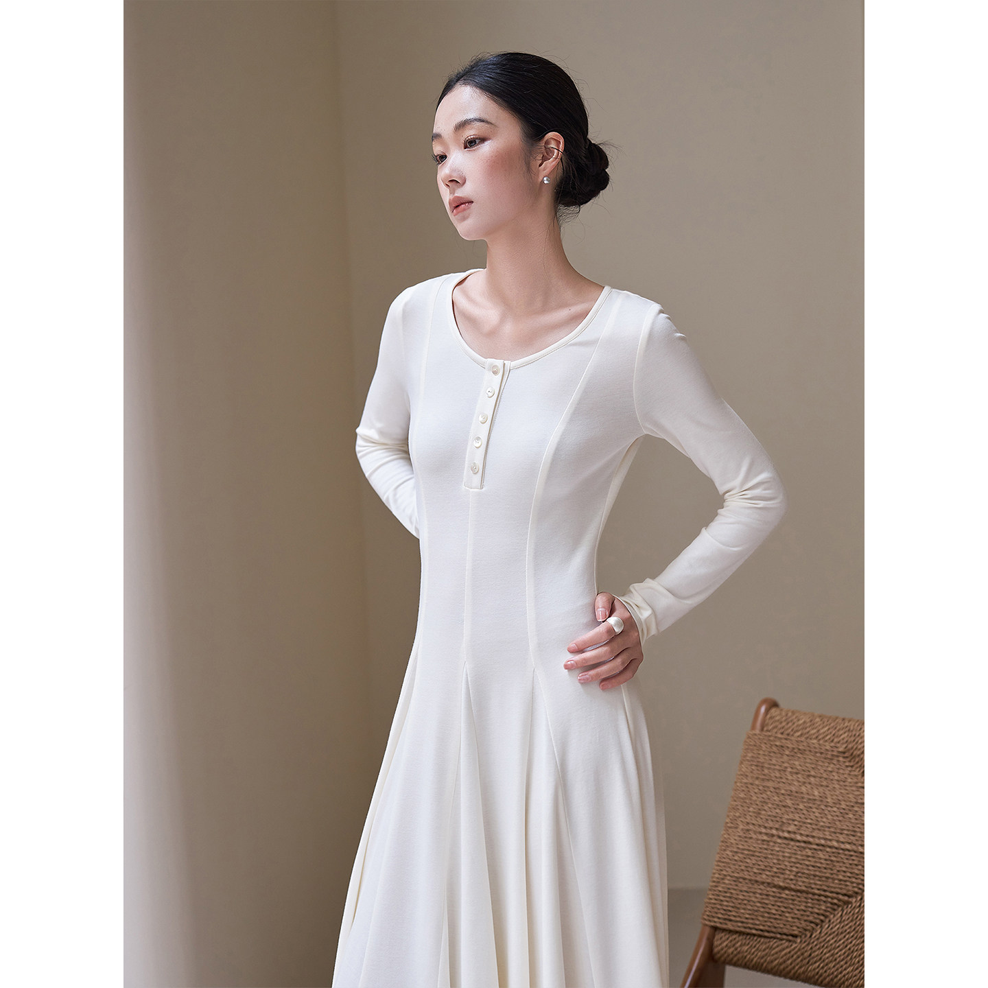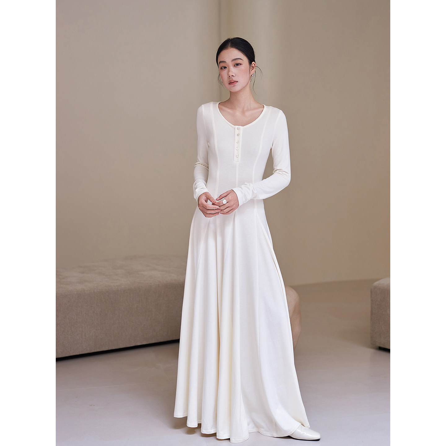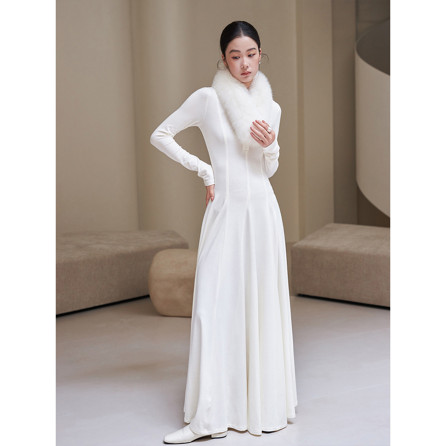签儿新品秋冬内搭神器长袖白色针织连衣裙法式高级感修身打底裙子