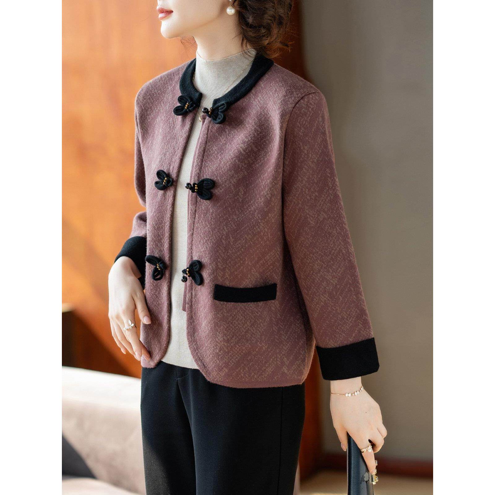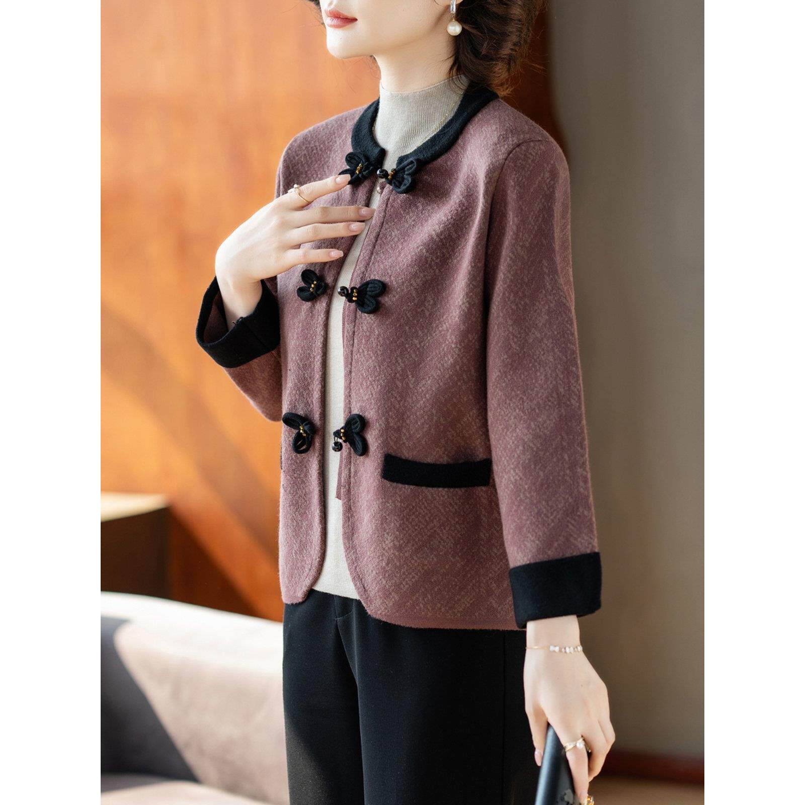 妈妈春装外套2025新款中老年人女士洋气时尚上衣服40岁50毛衣开衫