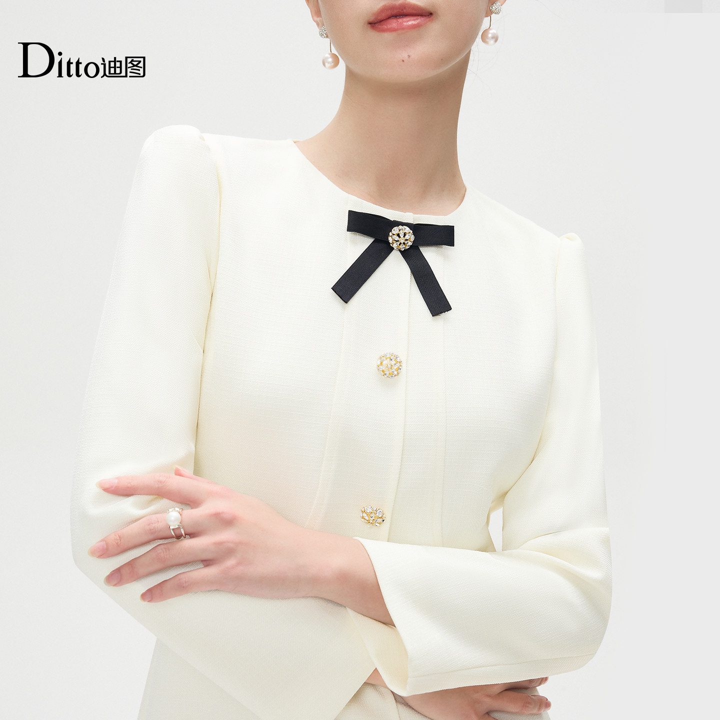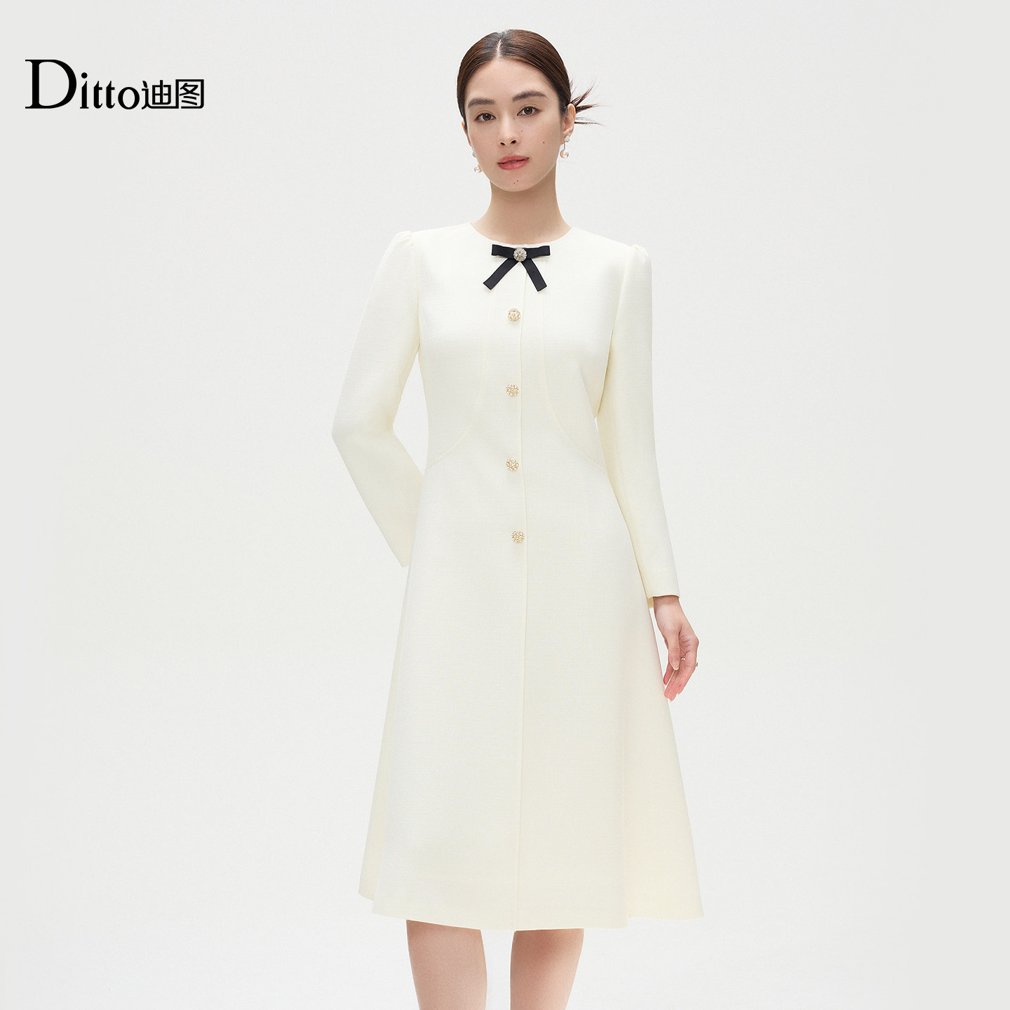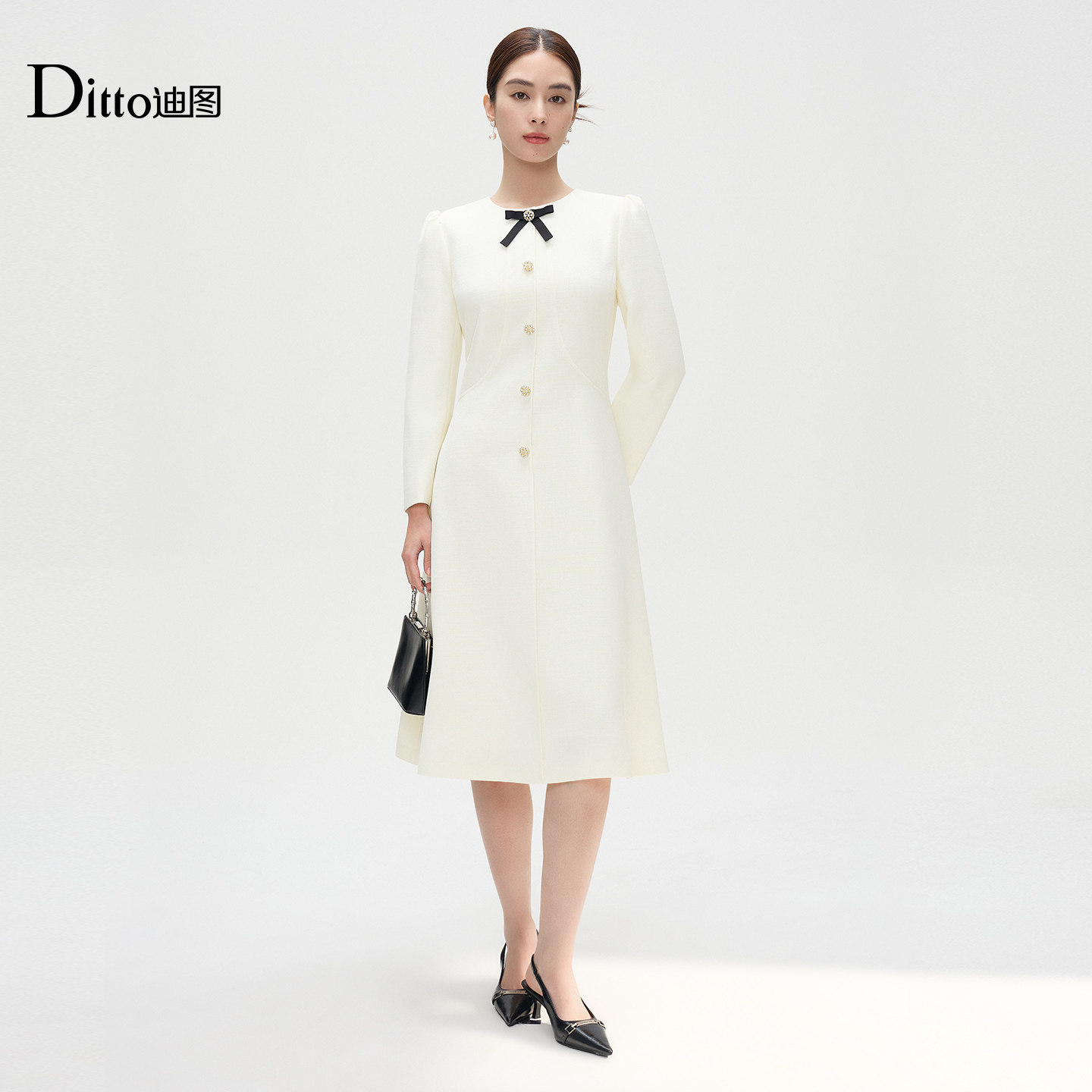 迪图2026春季新款时尚简约气质轻奢小香风高级感女士收腰连衣裙