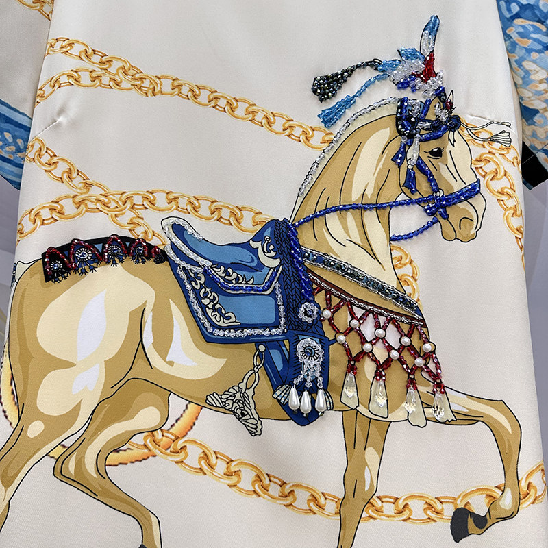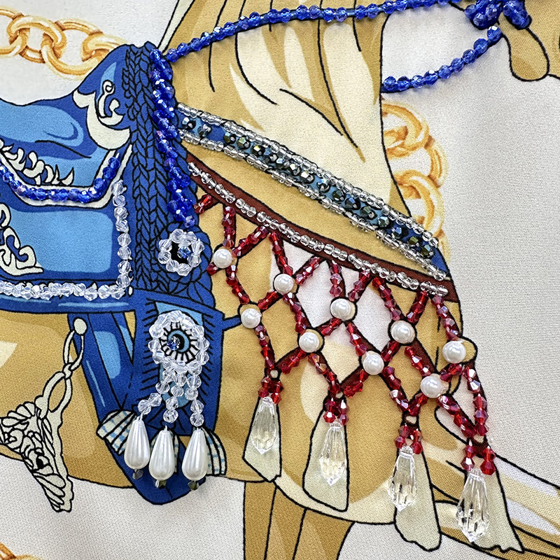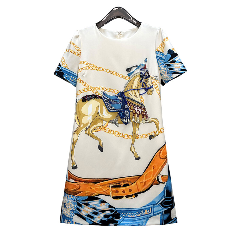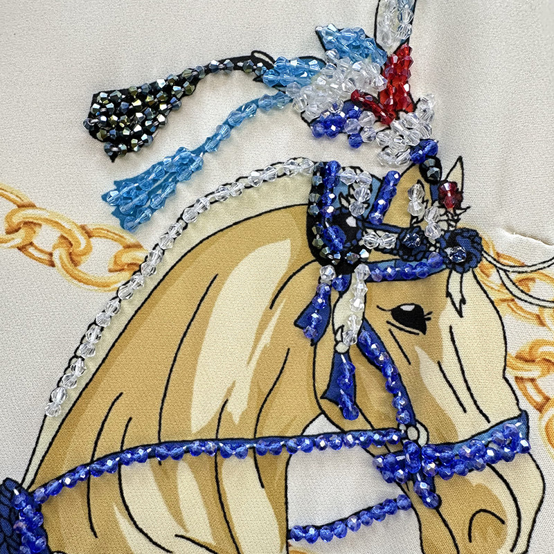 高级感轻奢小个子连衣裙夏季新款女装重工订珠减领a字爱马印花裙