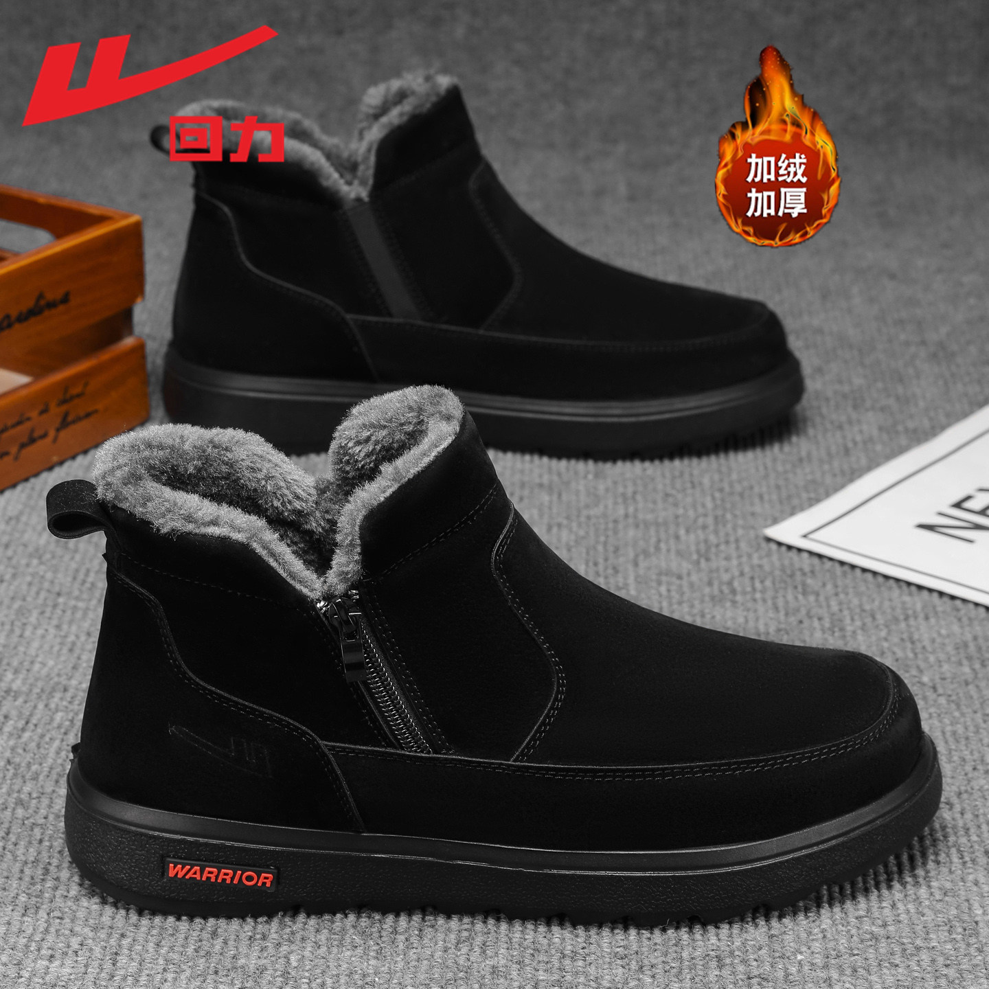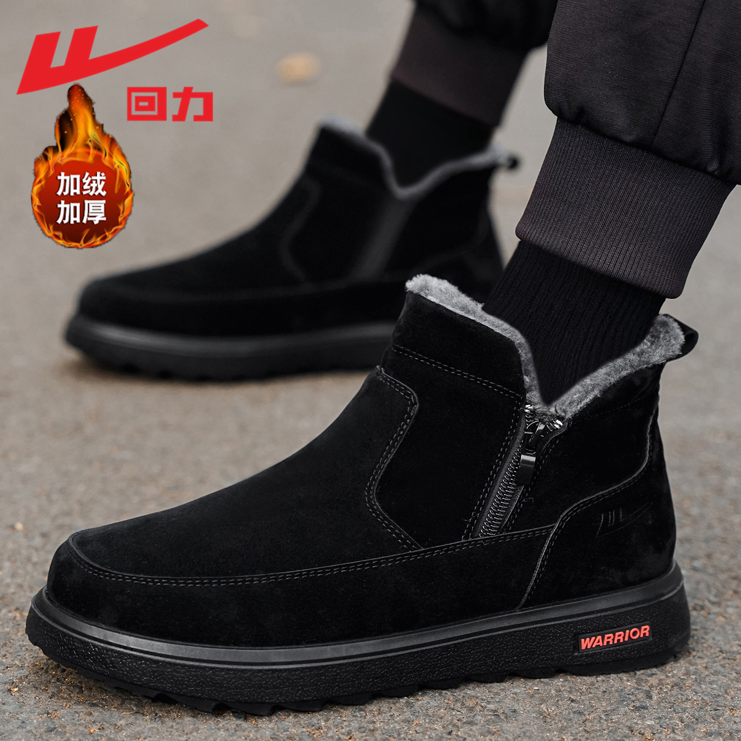 回力男鞋一脚蹬高帮棉鞋2025冬季加绒加厚保暖鞋子东北防寒雪地靴