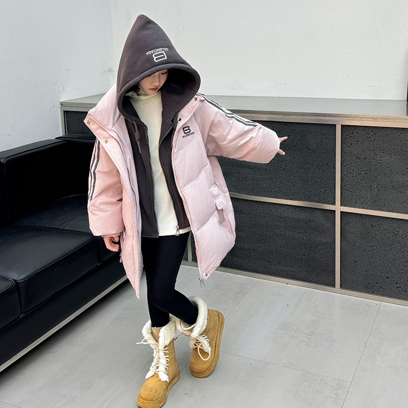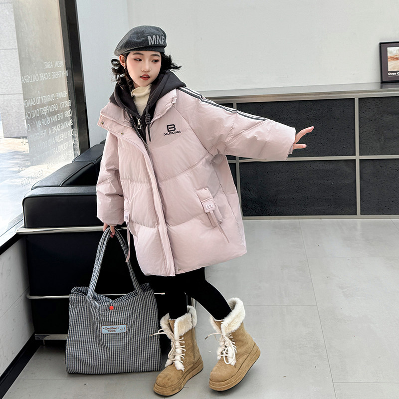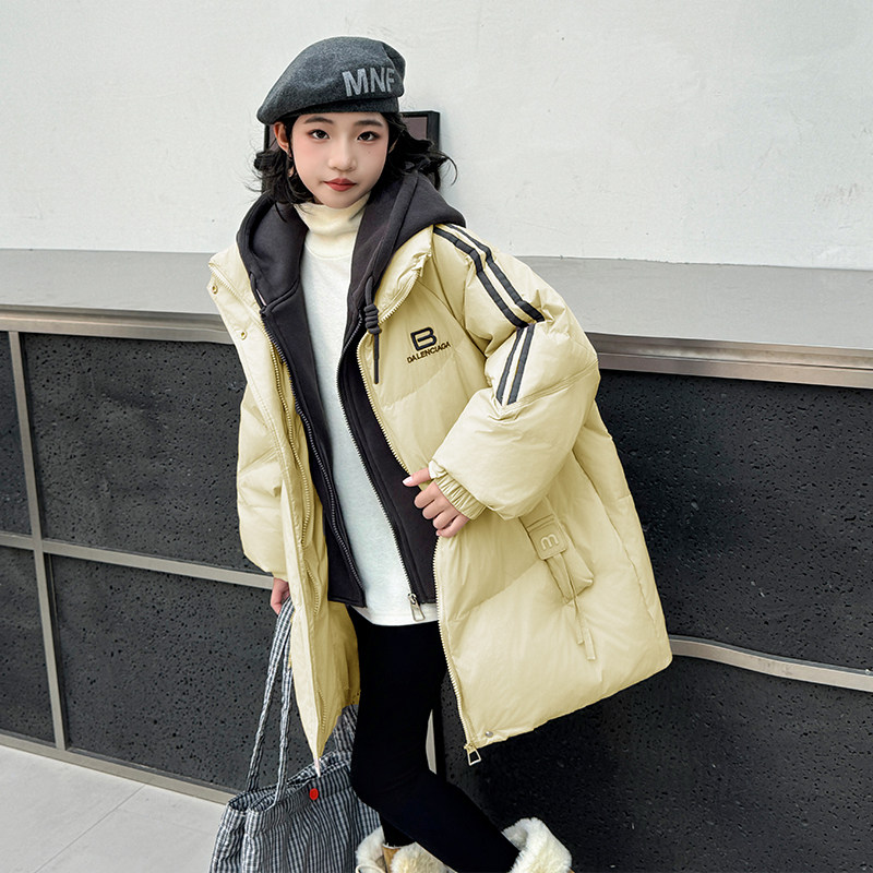 女童棉衣中长款假两件加棉保暖外套2024新款童装洋气中大童时髦潮