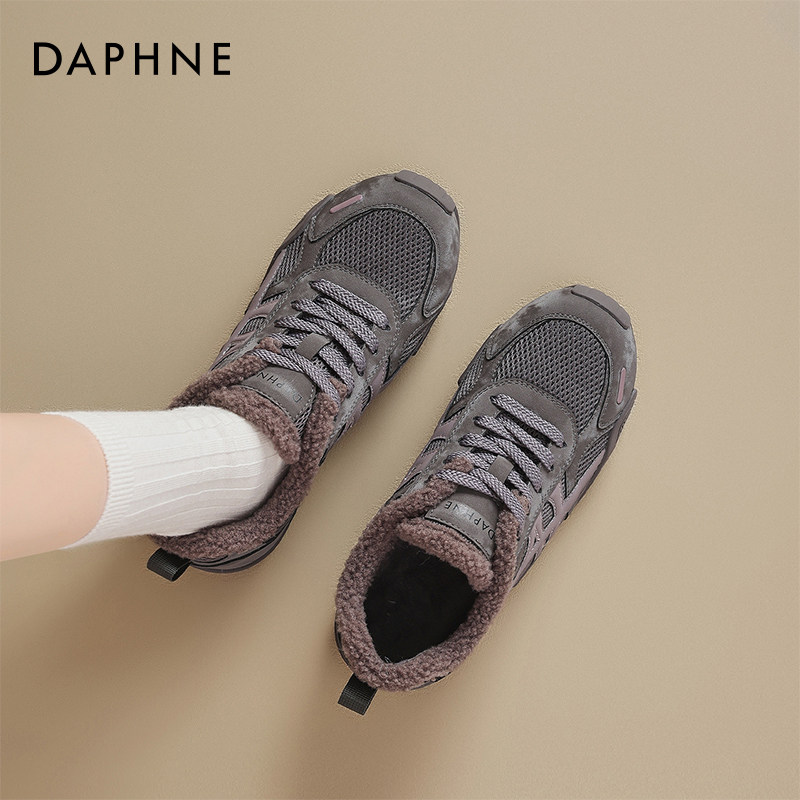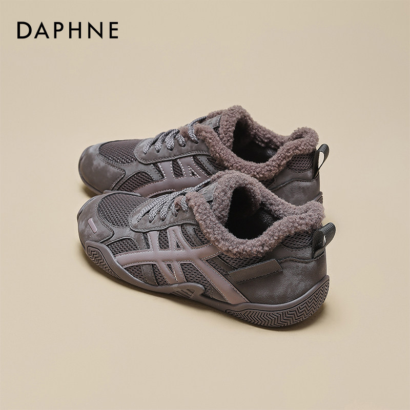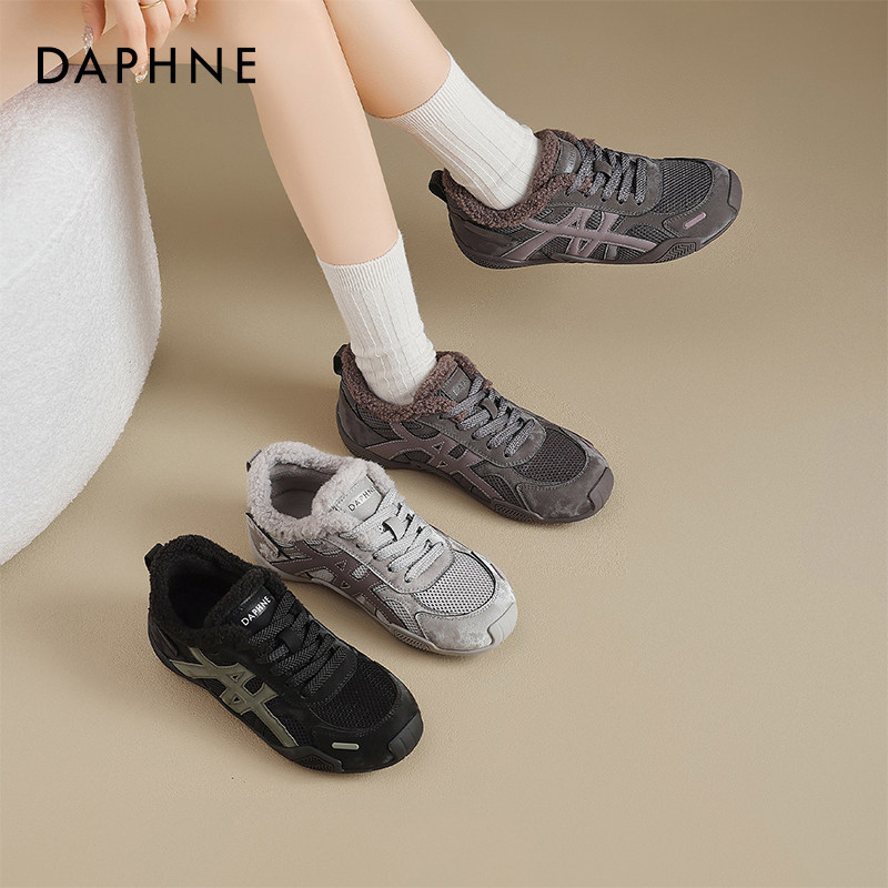 达芙妮加绒德训鞋女款2025冬季新款紫色平底板鞋软底阿运动甘棉鞋