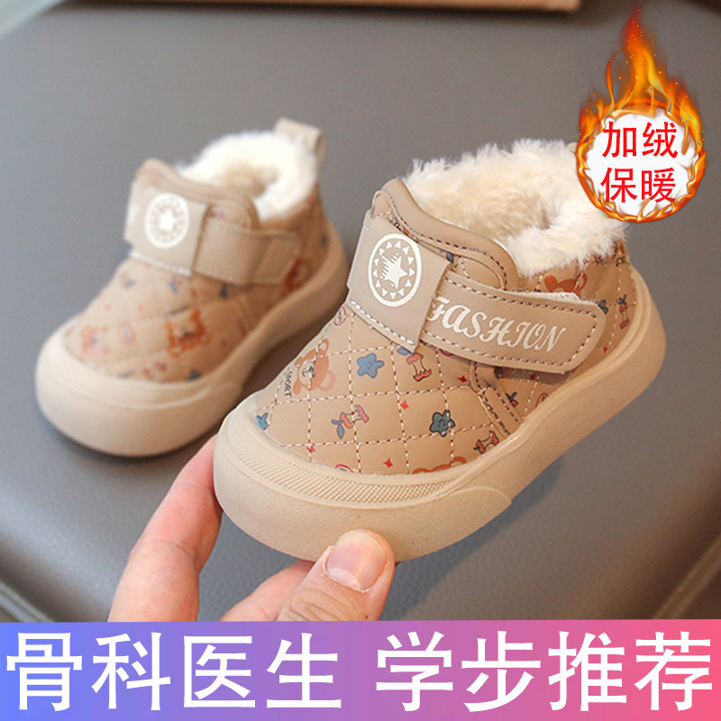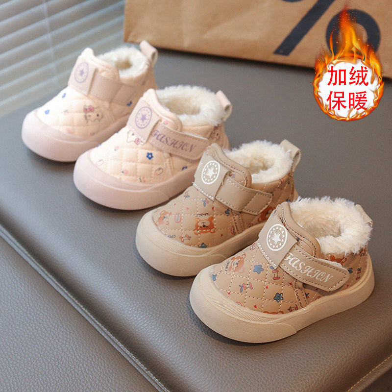 冬季女宝宝棉鞋加绒加厚女童保暖雪地靴男小童学步鞋婴儿鞋子软底
