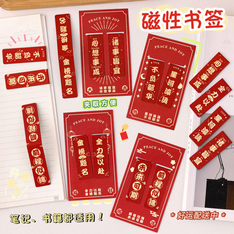 中学生书页夹开学季激励文具小奖品 中国风励志文字磁性书签批发