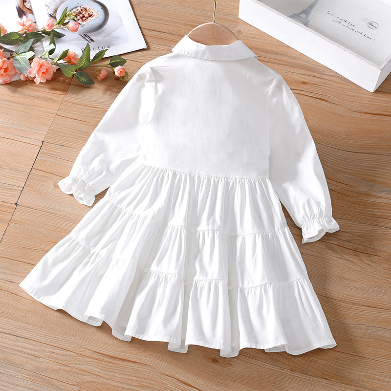 女童春秋装长袖白色连衣裙2025新款中大童洋气百搭秋季纯色公主裙