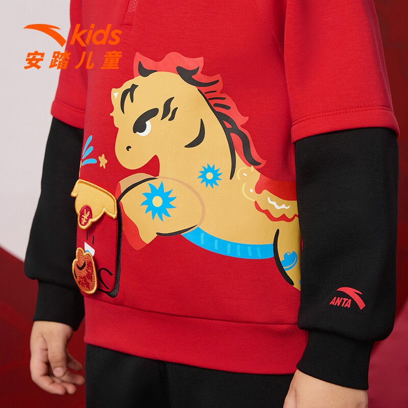 【新年马年】安踏儿童卫衣男童套头2026年春款新亲肤儿童宝宝卫衣