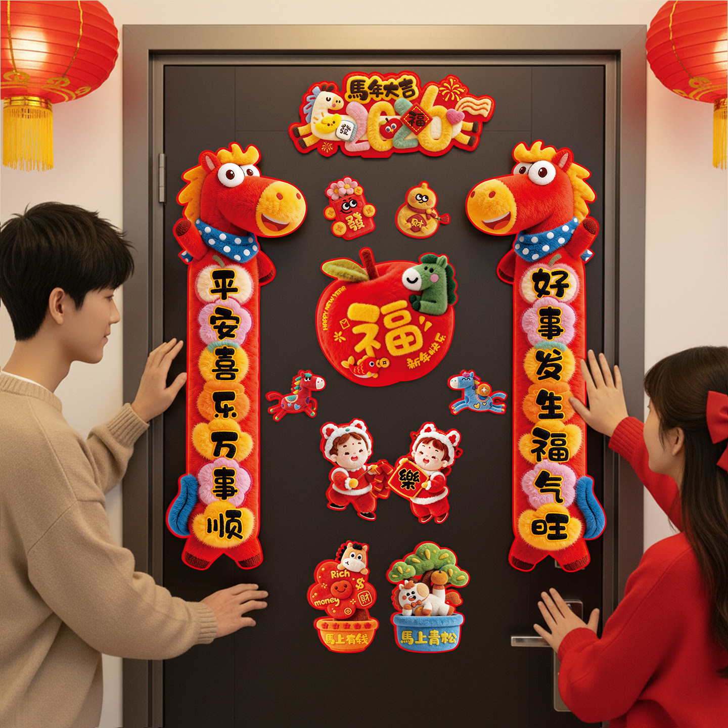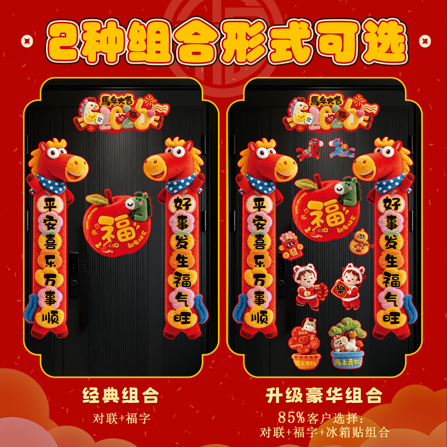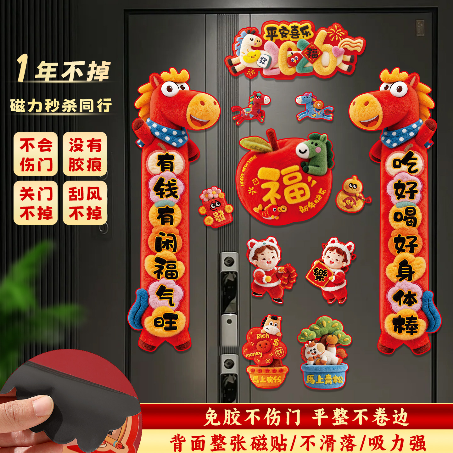 马年5d全磁吸对联入户门春联2026新款创意年轻人过年家用新年门贴