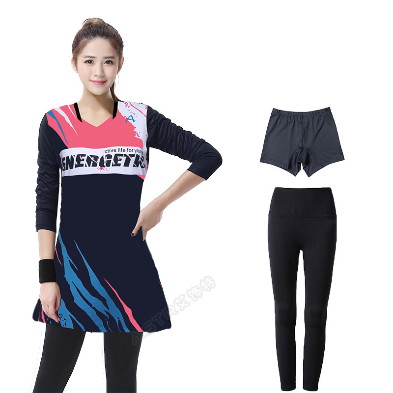 羽毛球服女连衣裙长袖速干运动T恤套装团购定制韩国大码网乒上衣