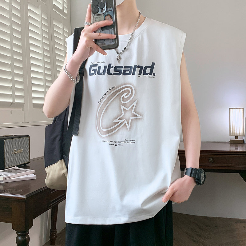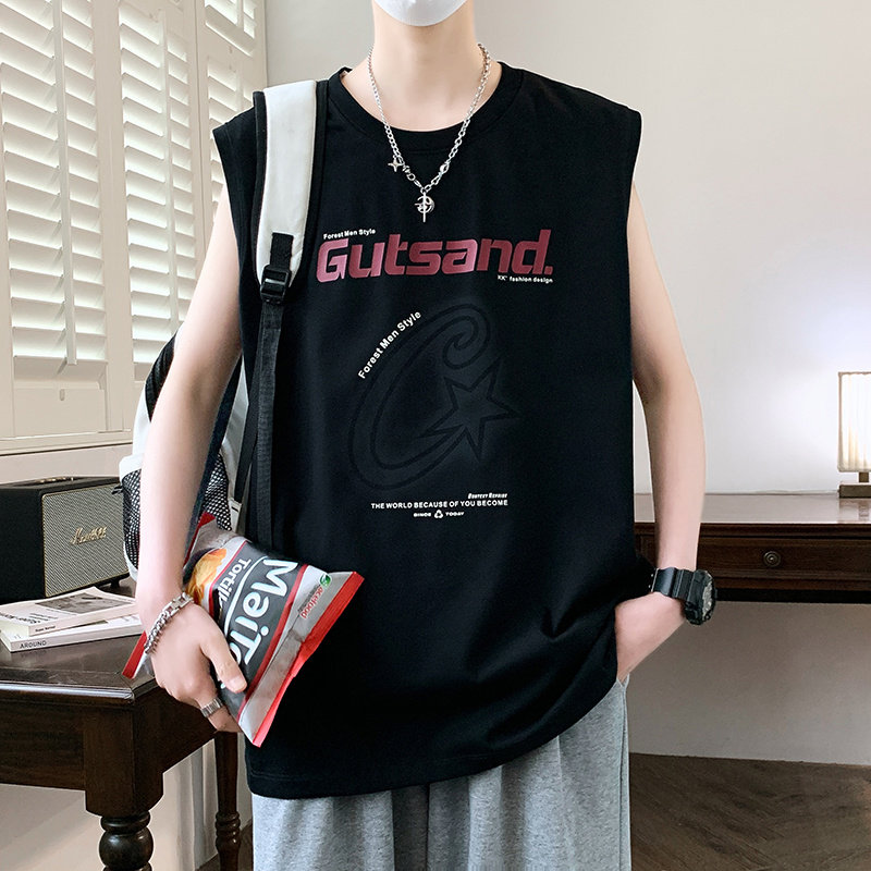 冰丝无袖t恤男孩夏季新款青少年大学生运动休闲健身背心坎肩上衣